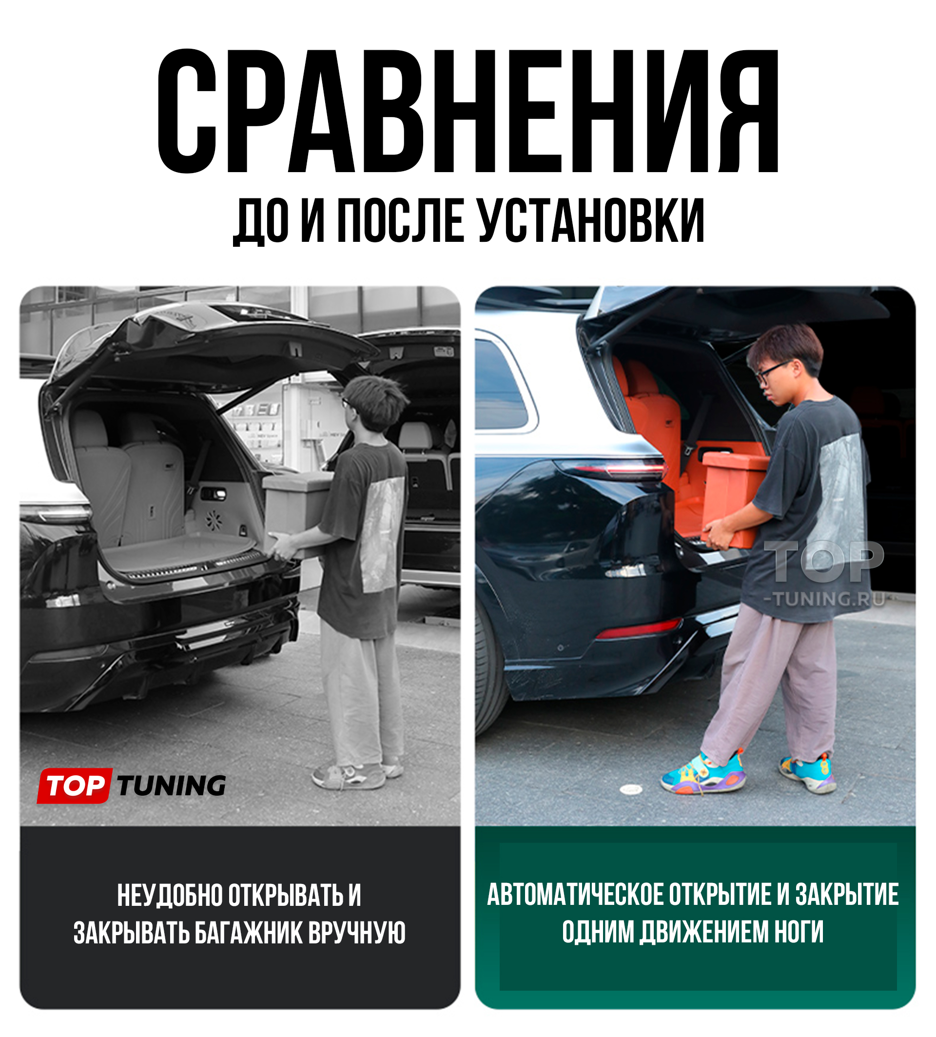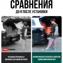 Устройство не заменяет, а модернизирует оригинальную опцию — добавляя удобство бесконтактного доступа к уже существующему автоматическому открытию багажной двери.