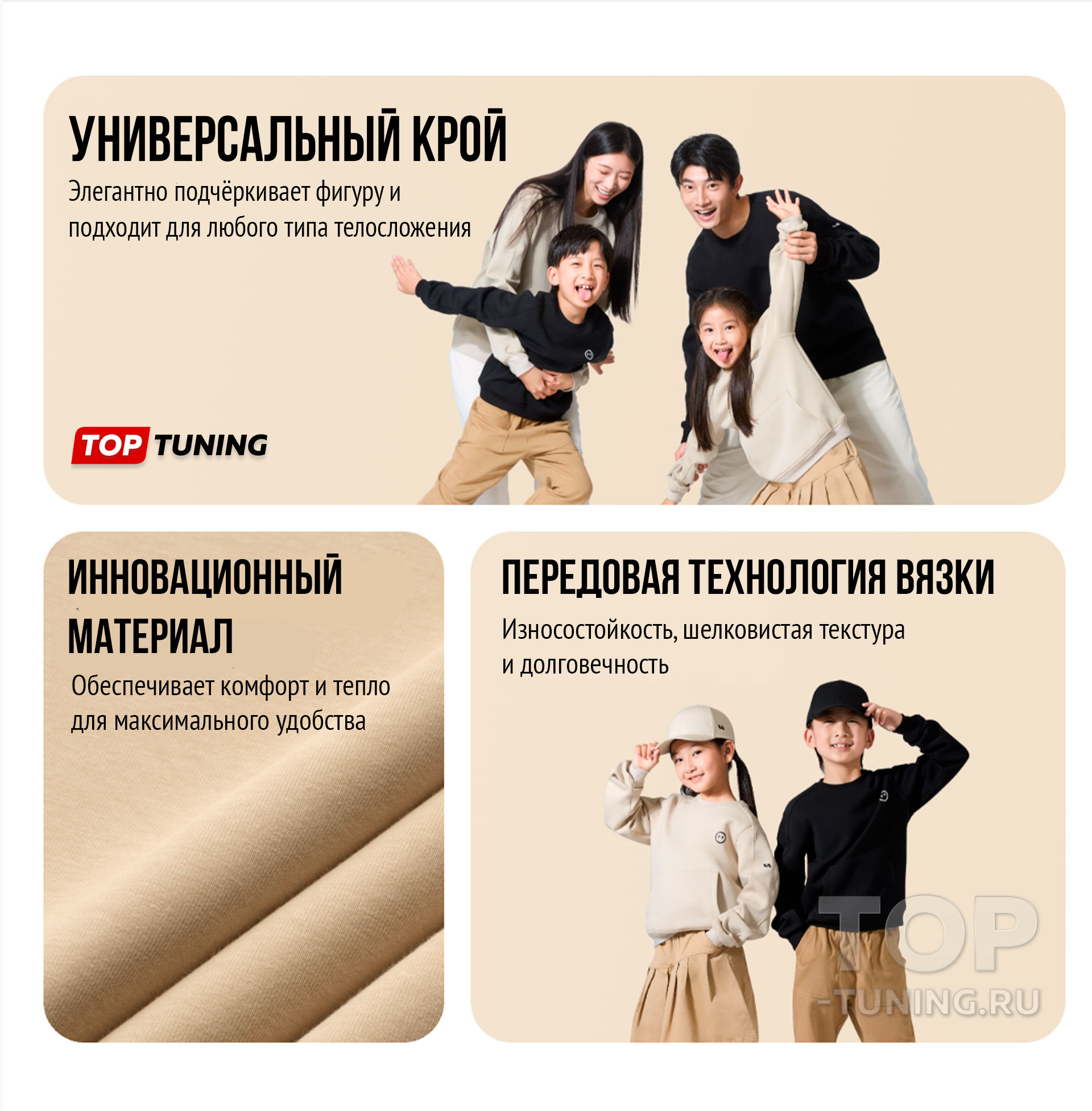 Единый дизайн для взрослых и детей создаёт стильное сочетание простоты и классических цветов, идеально подходящее для всей семьи. Такой подход делает заботу и любовь неотъемлемой частью повседневного гардероба, сопровождая вас теплом и счастьем в каждом моменте совместного времени.
