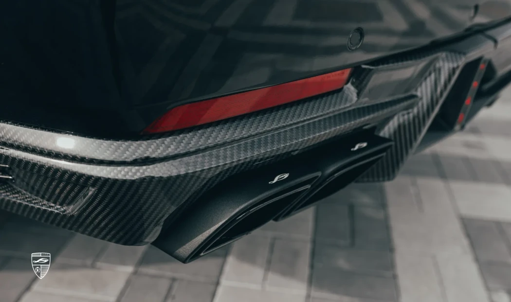 Конструкция интегрируется в геометрию заднего бампера и гармонично сочетается с другими элементами тюнинга комплекта Esthete.