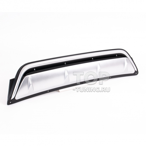 Спортивный диффузор R-Line для модернизации внешнего вида заднего бампера Skoda Kodiaq с 2016 по 2021 год выпуска. Изготовлен из АБС пластика. Накладка поставляется окрашенная в серебристый или черном, глянцевом исполнении.