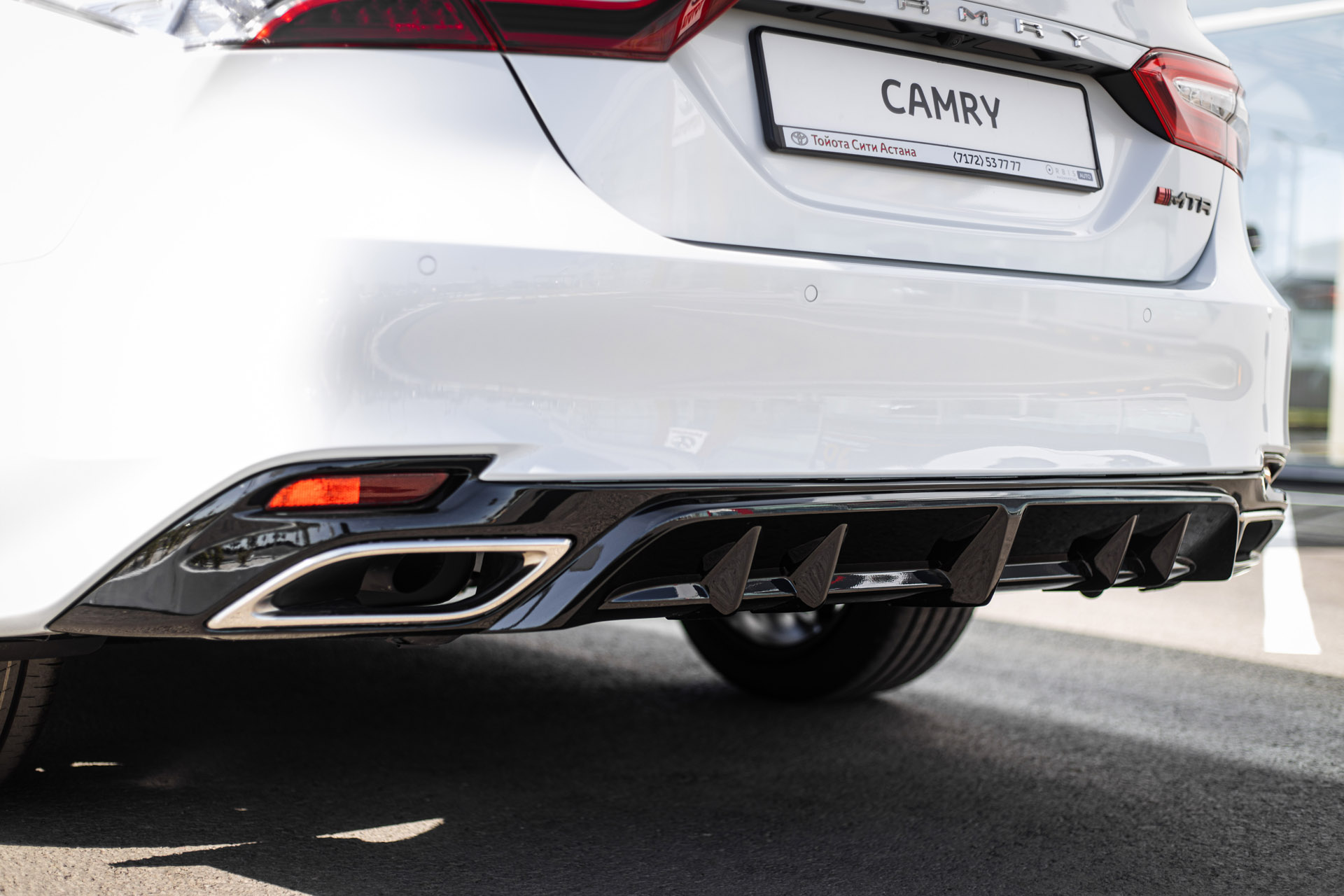 Задняя часть Toyota Camry XV70 (рестайлинг) получает более выразительный и завершённый внешний вид с диффузором MTR Design. Элемент придаёт автомобилю спортивный характер, визуально расширяет корму и делает силуэт более динамичным.