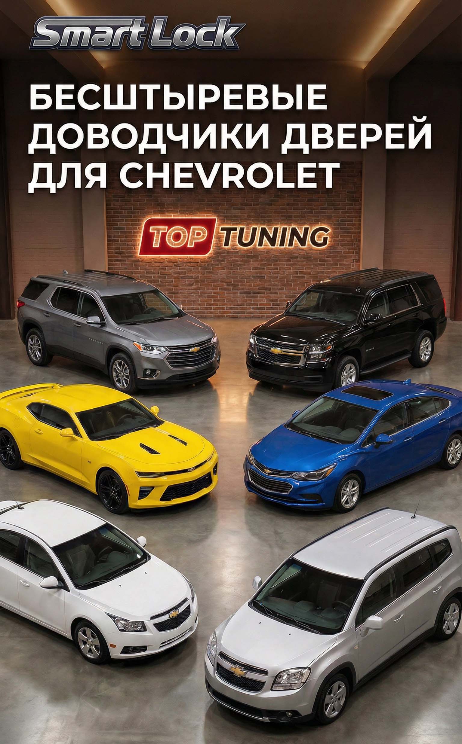 Бесштыревые доводчики дверей Smart Lock Premium для автомобилей Chevrolet — это технически выверенное дооснащение OEM-уровня, разработанное специально под заводские замки Camaro, Tahoe, Cruze, Malibu, Orlando и Traverse.