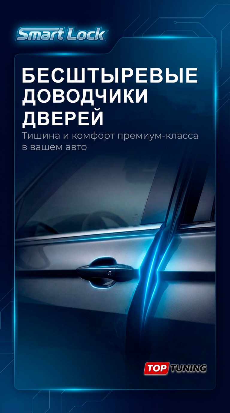 Беcштыревые электронные доводчики Smart Lock Premium — это технологичное решение для владельцев Geely Tugella, которое обеспечивает плавное, бесшумное и полностью автоматическое подтягивание двери до полного закрытия. Система создана для тех, кто ценит максимальный комфорт, премиальный пользовательский опыт и OEM-подход к дооснащению.