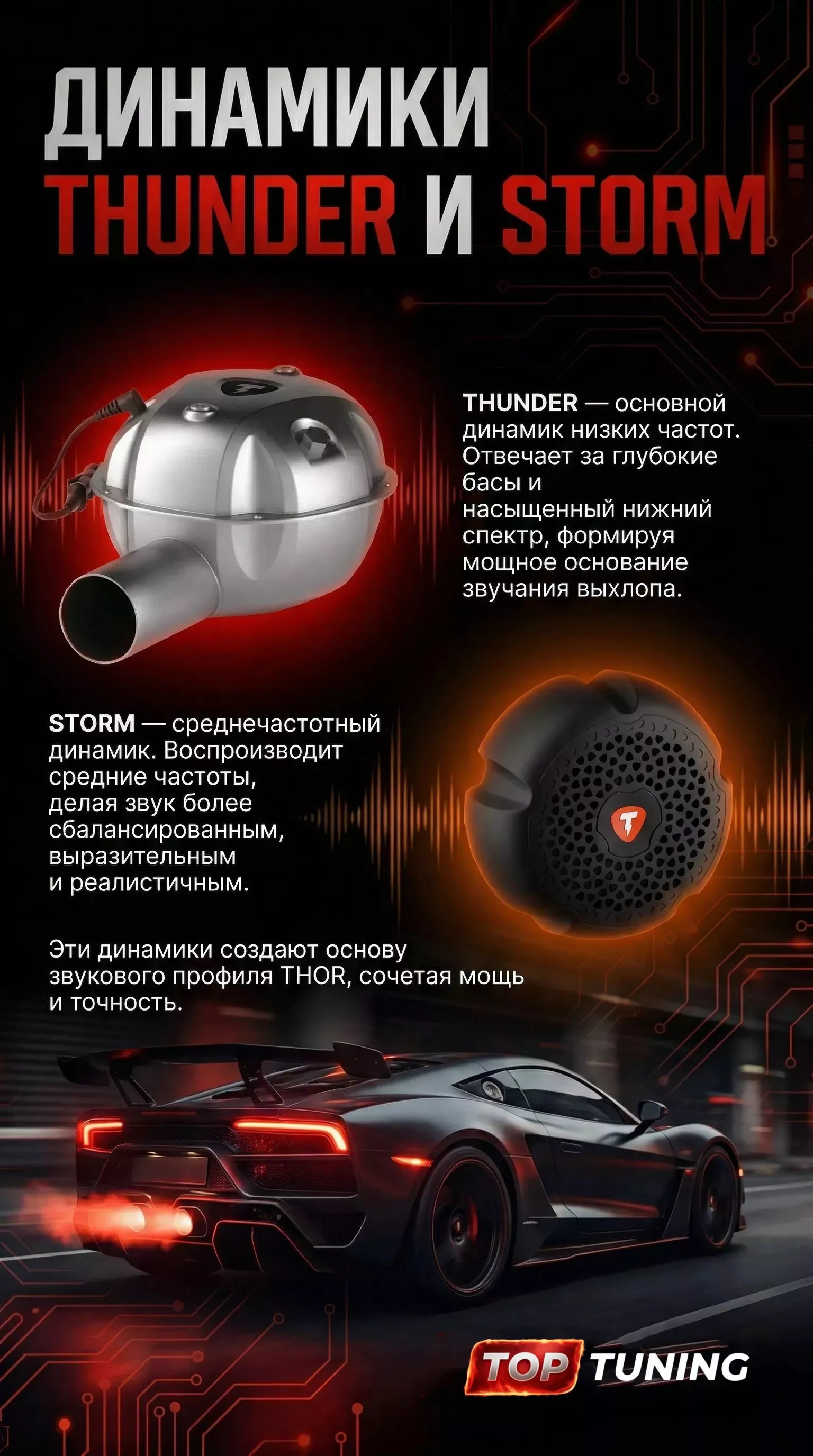THOR — это электронная выхлопная система, использующая один или несколько акустических модулей для генерации реалистичного звука двигателя в реальном времени.