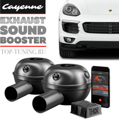 Инновационный продукт - интеллектуальная система THOR. Позволяет управлять и усиливать звук штатной выхлопной системы любого PORSCHE CAYENNE, с любым типом двигателя, в том числе гибридной версии, генерируя дополнительные звуковые волны в соответствии с режимами работы коробки передач и мотора. Независимое подключение системы по шине CAN не влияет на конструкцию автомобиля и его характеристики, что делает монтаж комплекта THOR полностью безопасным и привлекательным для владельцев новых автомобилей на гарантии.