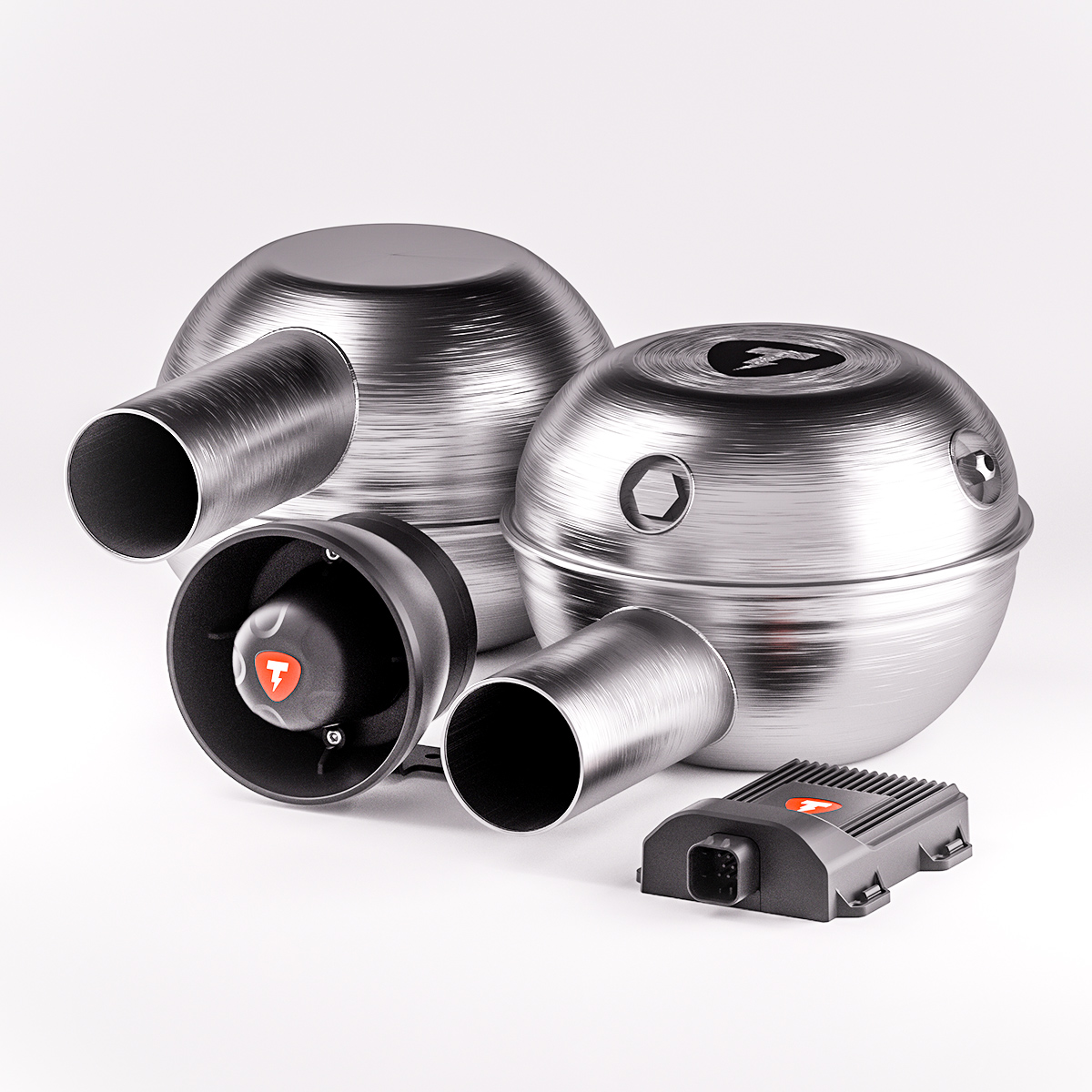 THOR - революционная система, состоящая из одного иди двух (*опция) сверхмощных динамиков в специальном корпусе из сплава титана и стали, способная выдавать звук мощностью от 35 до 50 децибел (db), что в сопоставимо со звучанием BMW M3 и Mercedes AMG C63.