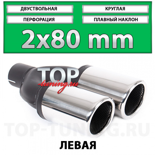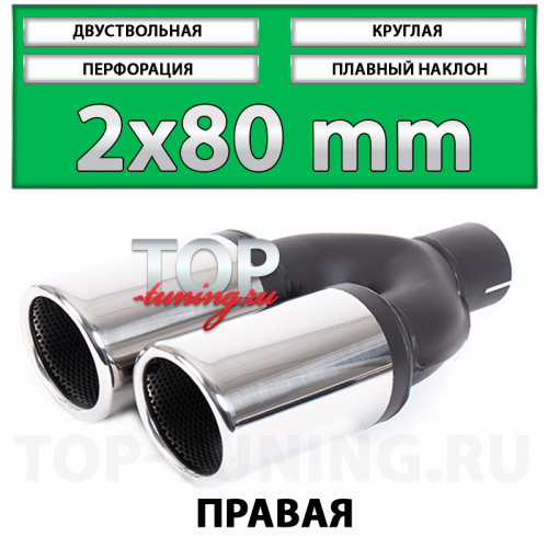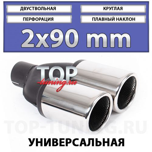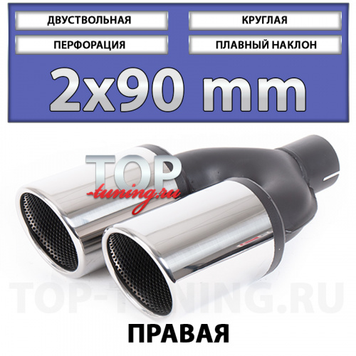 Качественные насадки на выхлоп из нержавеющей стали с левым, правым или центральным расположением. Модель Premium имеет наполнение из перфорированной нержавеющей стали и скошенное под углом окончание. Стандартная форма насадок Y-Pipe позволяет сохранить баланс подачи выхлопных газов в обе трубы, оставляет штатный звук автомобиля и не влияет на давление (или противодавление) в выхлопной системе. Размер входного отверстия 50 миллиметров. Насадки рассчитаны под установку на одинарную трубу. Метод монтажа - сварка.