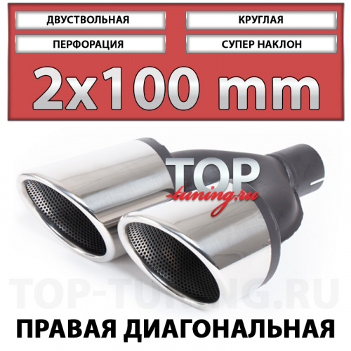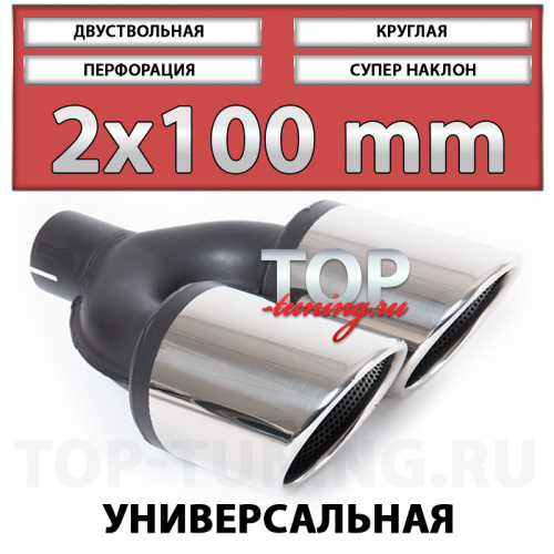 Универсальные выхлопные насадки из нержавеющей стали с левым, правым или центральным расположением в бампере. Модель Premium имеет наполнение из перфорированной нержавеющей стали и скошенное под сильным углом окончание. Стандартная форма насадок Y-Pipe позволяет сохранить баланс подачи выхлопных газов в обе трубы, оставляет штатный звук автомобиля и не влияет на давление (или противодавление) в выхлопной системе. Размер входного отверстия 50 миллиметров. Насадки рассчитаны под установку на одинарную трубу. Метод монтажа - сварка.