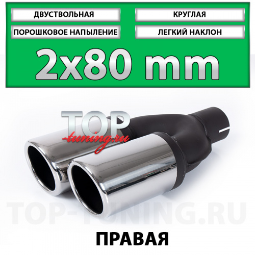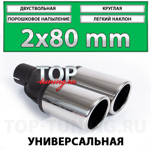 Двуствольные насадки Revolt 80mm - популярное решение для установки в тюнинг обвесы для небольших седанов, хэтчбеков или универсалов, таких как: Porsche Panamera, Lexus ES, Audi A7, Mercedes S-klasse и других, подходящих по монтажным габаритам автомобилям оснащенными обвесами с выходами под насадки, такими как: MUGEN, ABT, AMG, SCHNITZER, F-Sport и т.д. Одни из самых компактных по размерам насадки диаметром 80 миллиметров наиболее популярны при модернизации большинства выхлопных систем и подходят почти любому автомобилю с посадочной шириной выхлопных ёмкостей от 170 мм. Дополнительным преимуществом серии 80 мм. является наличие вариантов с диагональным расположением патрубков, что наиболее удачно выглядит на радиусных, округлых бамперах, где требуется разный вылет труб.