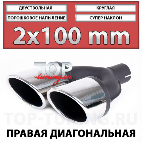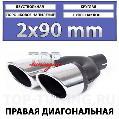 Двуствольные насадки Revolt 90mm - золотая середина в линейке REVOLT. Идеально подойдут для установки в премиальные кроссоверы и крупные бизнес седаны оснащенные подходящими по габаритам зонами для монтажа раздвоенных насадок. Характерный дизайн и острый угол наклона модели REVOLT предназначены для модернизированных BMW X5 E70 в комплектации M-Power, Renault Koleos, Infiniti FX, Porsche Cayenne, Volkswagen Touareg, Honda CR-V с установленными тюнинг обвесами HAMANN, WALD, LORINSER, LUMMA и т.д. Часто штатные бампера большинства кроссоверов в оригинальной комплектации имеют крупные отверстия под выхлопные, что делает замену заводских насадок удачным и простым решением, без необходимости замены заводского бампера. Однако, с точки зрения магазина ТОП ТЮНИНГ наиболее успешным будет сочетание тюнинг обвеса в комплекте с насадками REVOLT 90 mm.