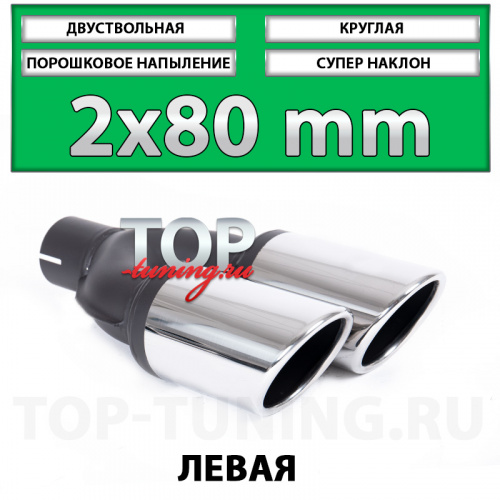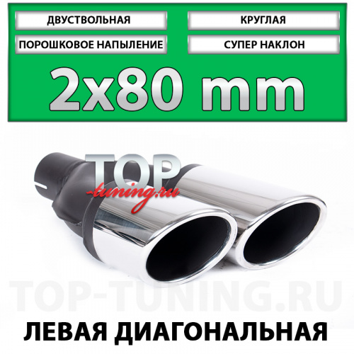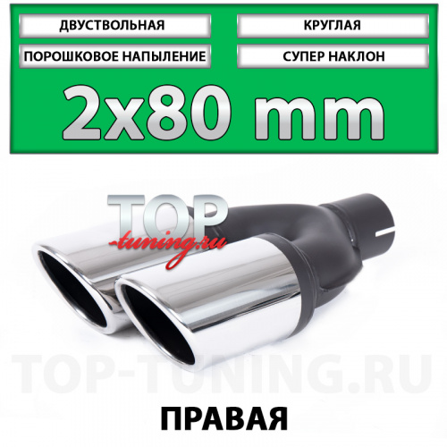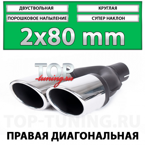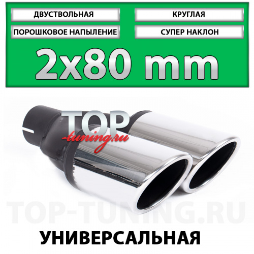 Двуствольные насадки Revolt 80mm - популярное решение для установки в тюнинг обвесы для небольших седанов, хэтчбеков или универсалов, таких как: Mercedes-Benz E-klasse, Audi A6, Ford Mondeo, Lexus LS, Mazda 6 GJ и других, подходящих по монтажным габаритам автомобилям оснащенными обвесами с выходами под насадки, такими как: Wald, AMG, AutoEXE, ABT и т.д. Одни из самых компактных по размерам насадки диаметром 80 миллиметров наиболее популярны при модернизации большинства выхлопных систем и подходят почти любому автомобилю с посадочной шириной выхлопных ёмкостей от 170 мм. Дополнительным преимуществом серии 80 мм. является наличие вариантов с диагональным расположением патрубков, что наиболее удачно выглядит на радиусных, округлых бамперах, где требуется разный вылет труб.