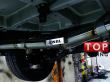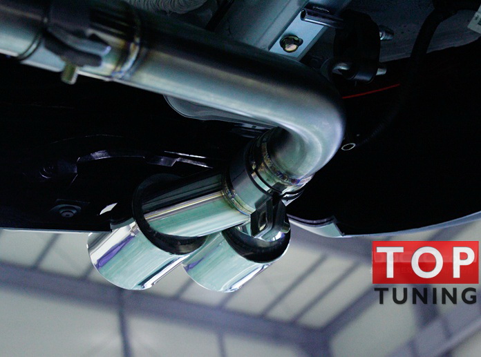 Раздвоенная выхлопная система с хромированными насадками глушителей Twin от производителя JUN BL (Южная Корея).