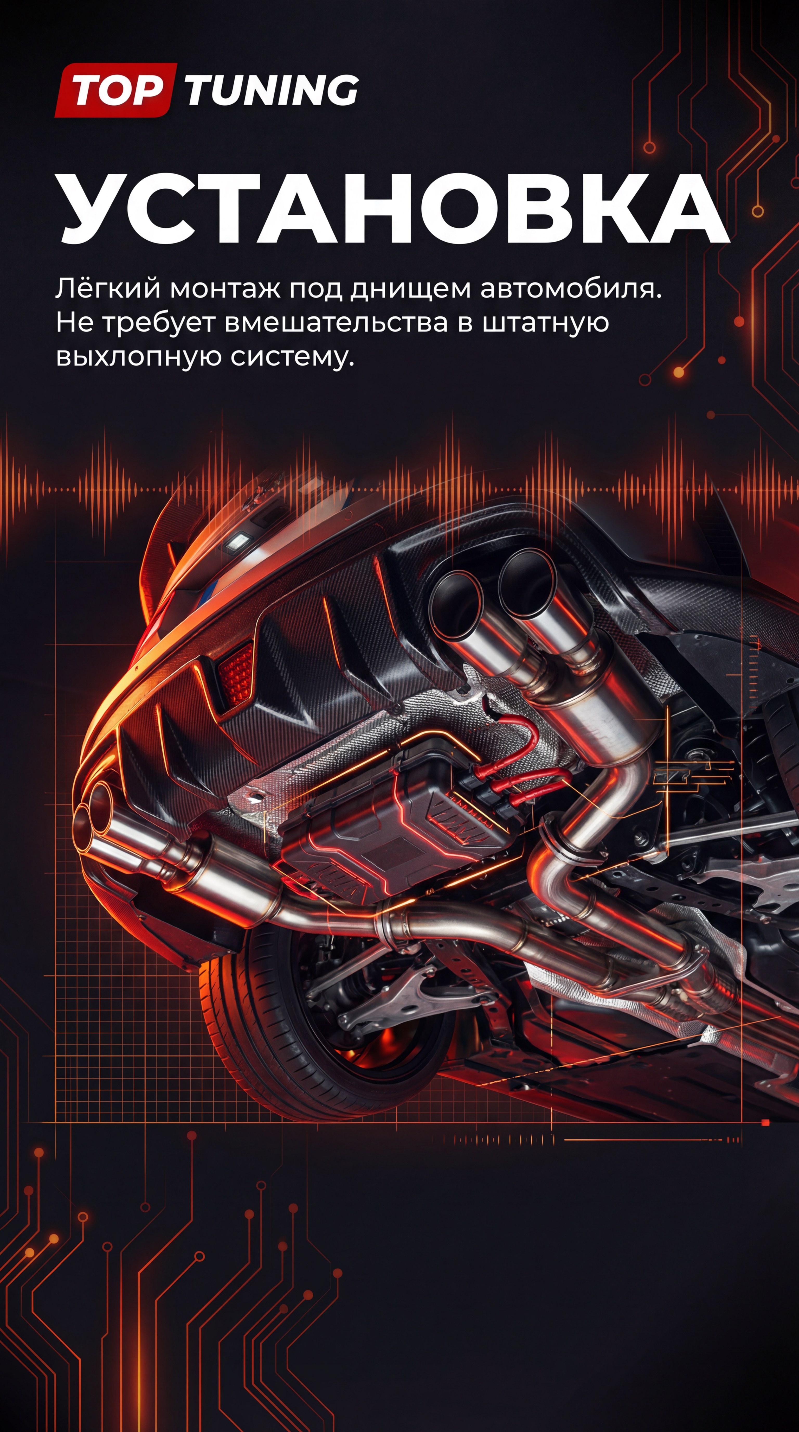 Система считывает данные напрямую из электроники автомобиля, корректно реагируя на обороты, нагрузку и режимы движения. Установка не требует механического вмешательства в выхлопную систему.