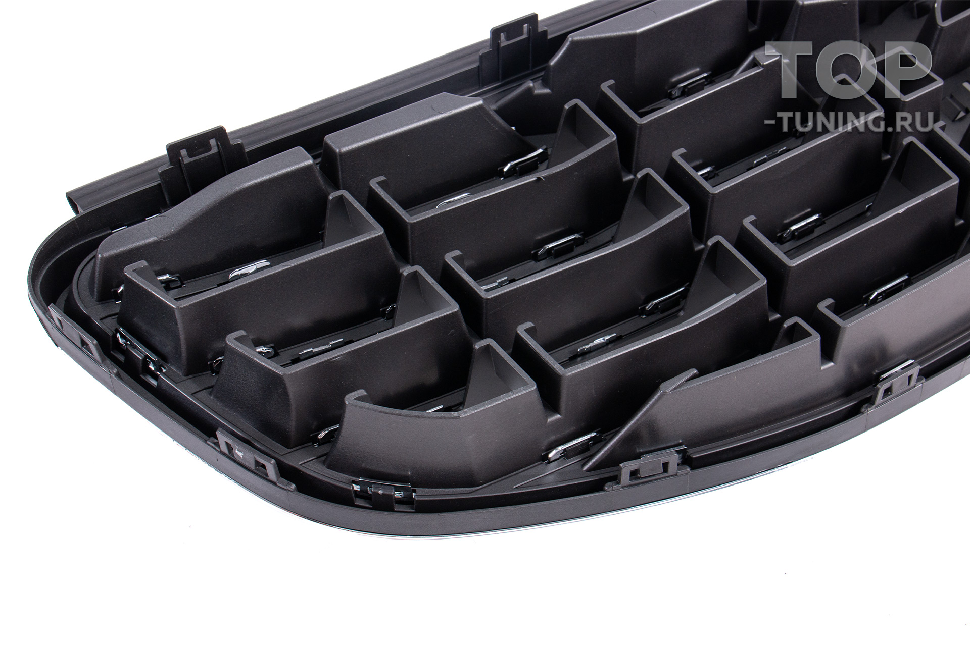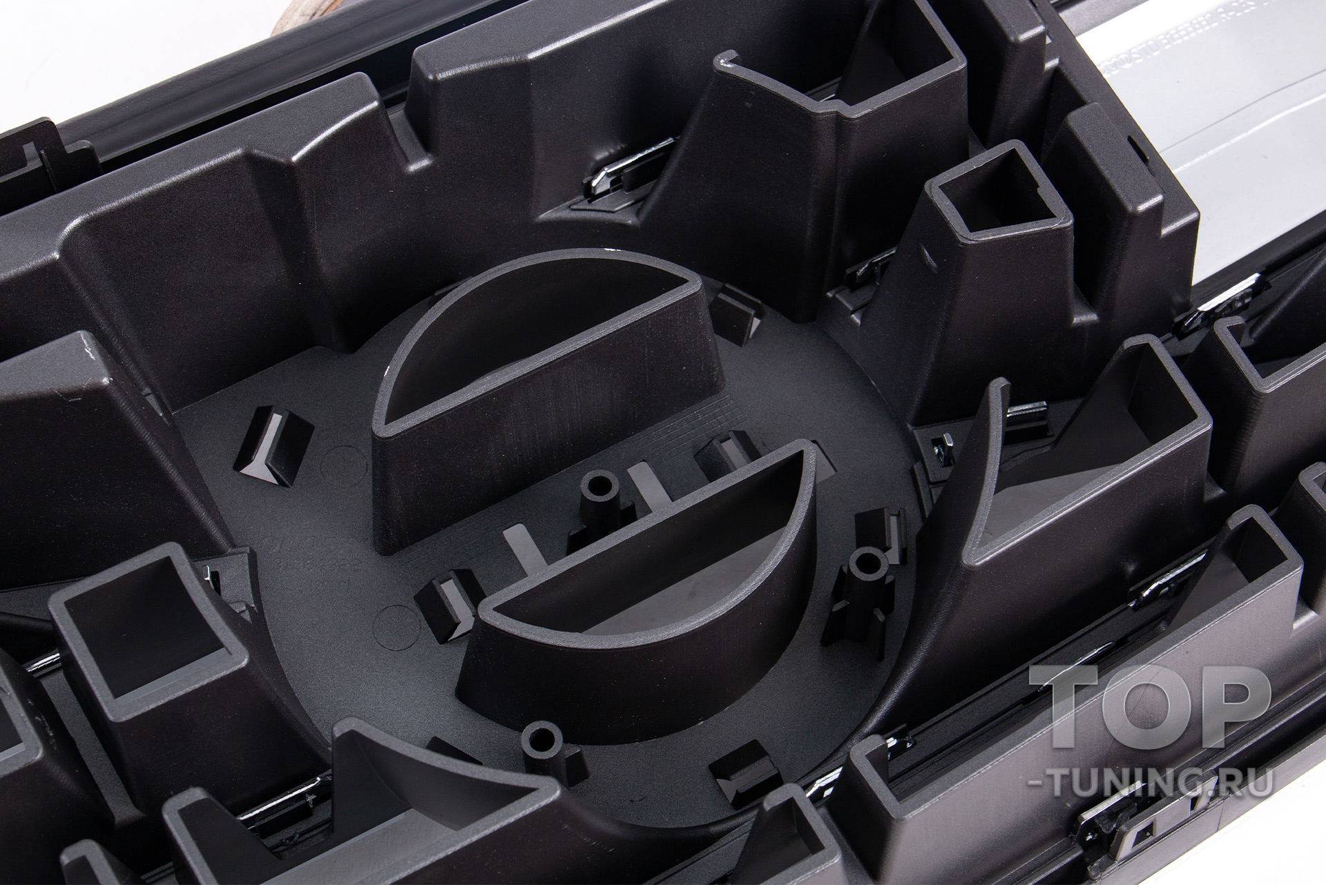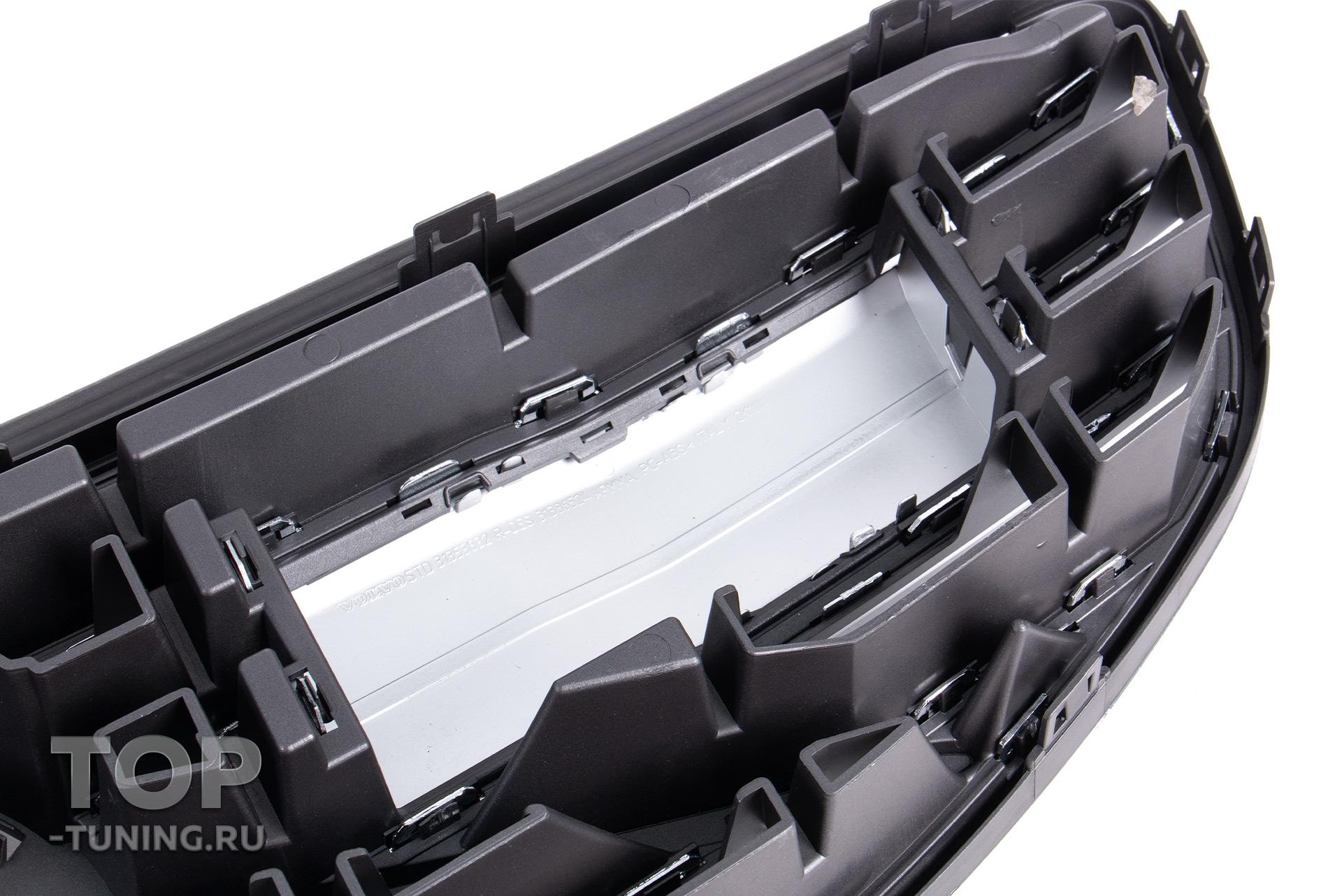 Решётка устанавливается на штатные крепления без подгонки. Возможен самостоятельный монтаж с использованием заводских направляющих, либо профессиональная установка в техцентре Топ-Тюнинг Москва.