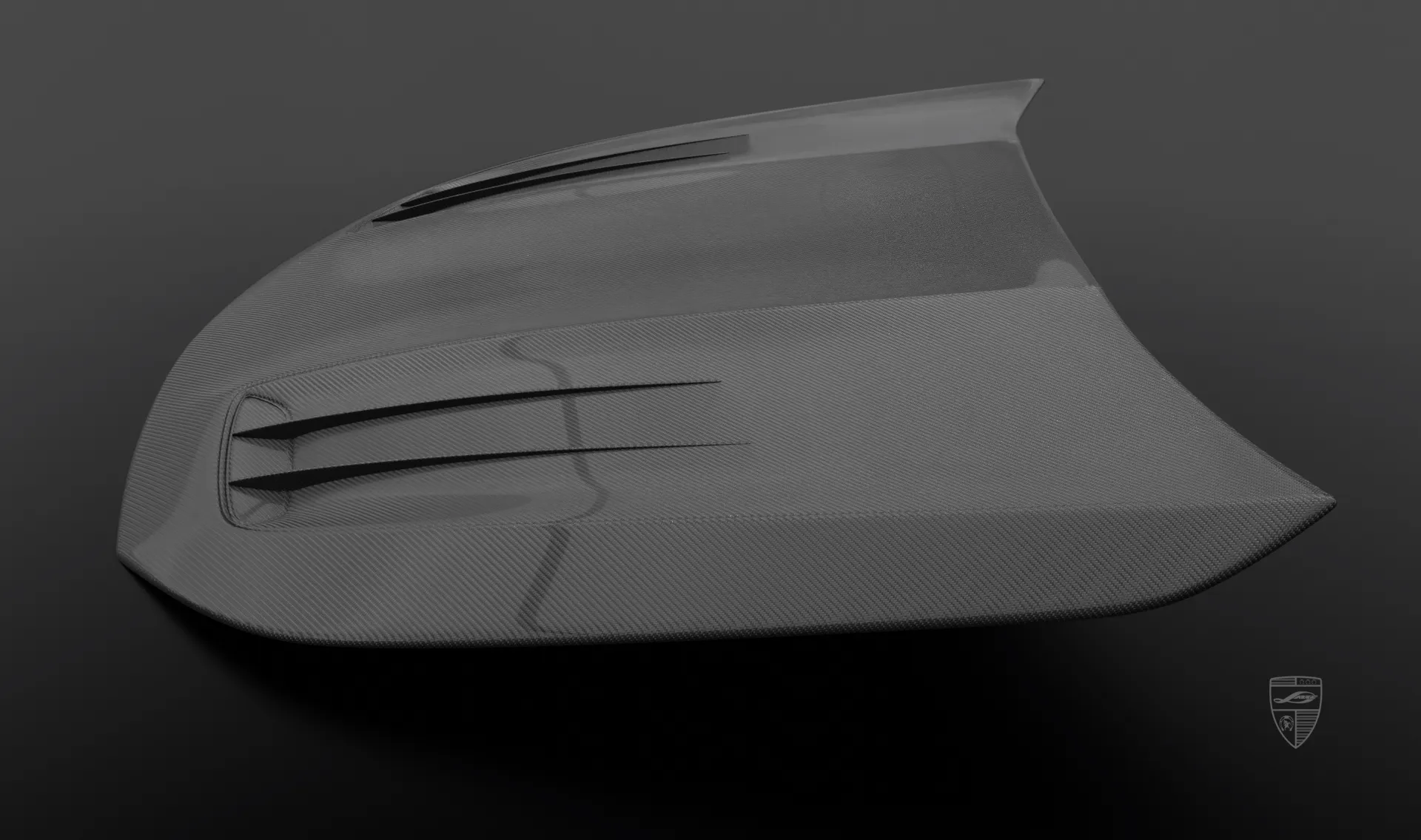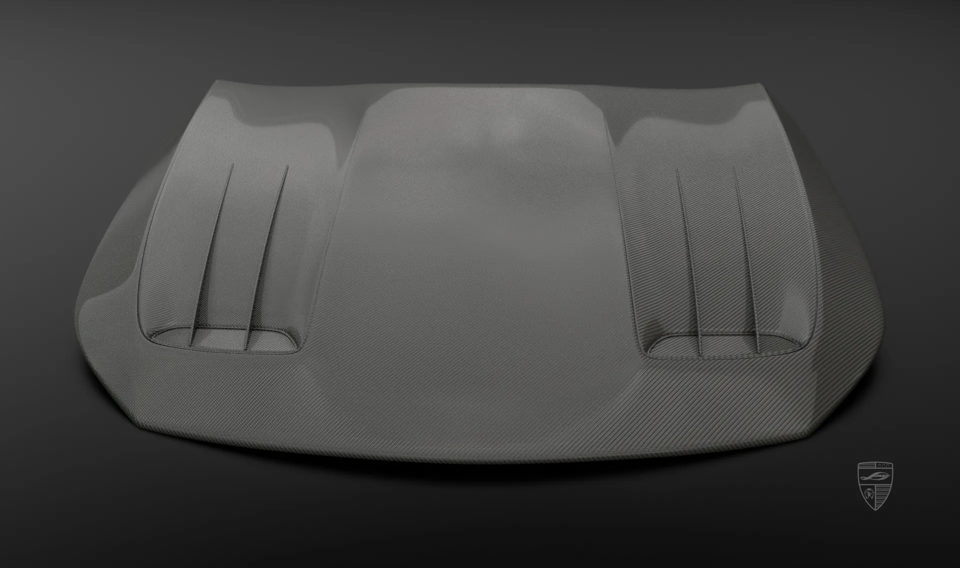 Капот реализован с применением 100% углеволокна или композитного базальта. Текстура натурального карбона формирует премиальный технологичный стиль и подчеркивает спортивные амбиции автомобиля. При выборе решения из окрашенного базальта сохраняется исключительная ударная вязкость и легкость панели.