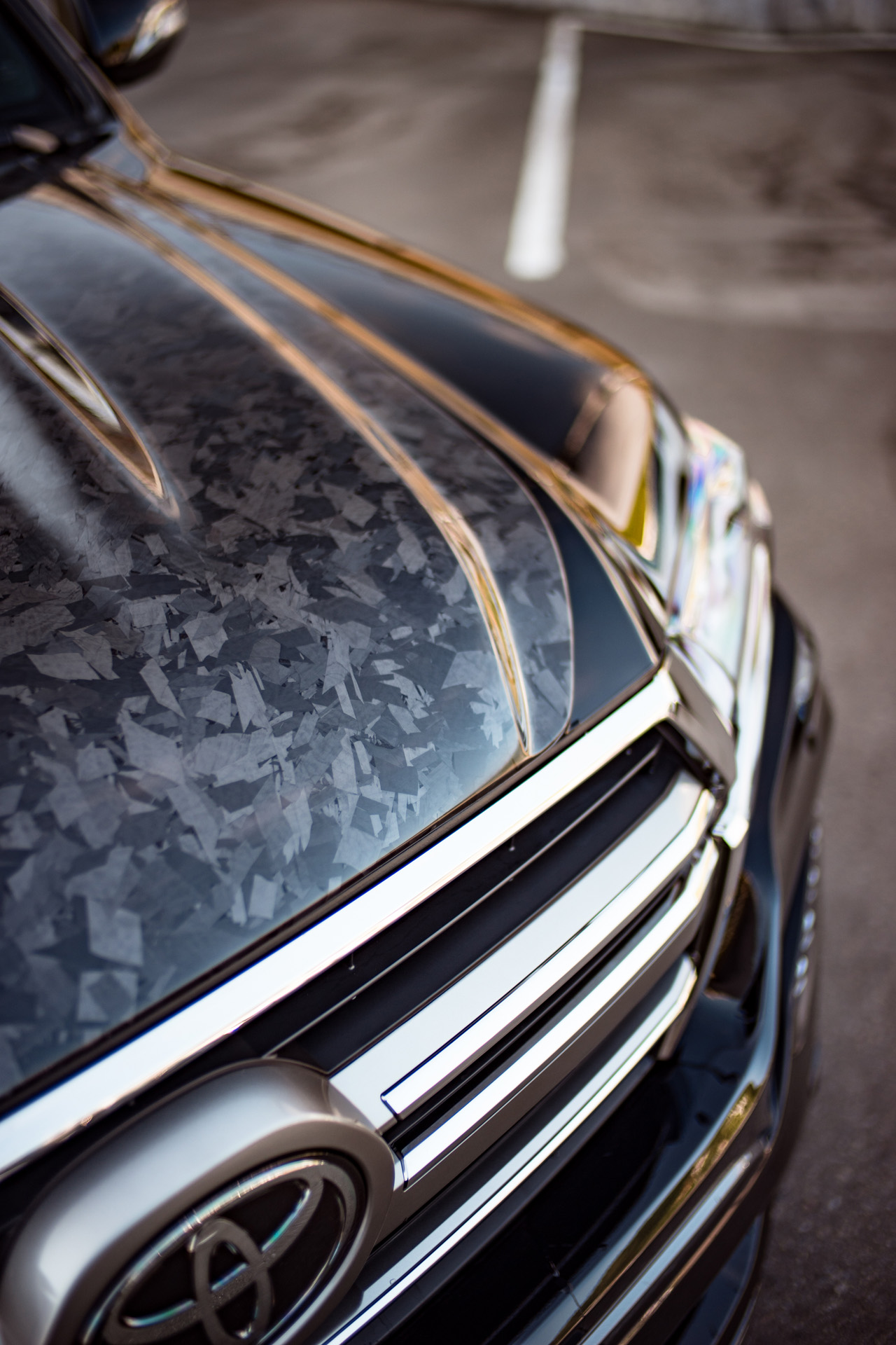 Карбоновая накладка на капот MTR Design — это акцентный элемент, который усиливает визуальную агрессию и премиальность Toyota Land Cruiser 200. Деталь подчеркивает мощную геометрию передней части и придает автомобилю более современный и динамичный облик.