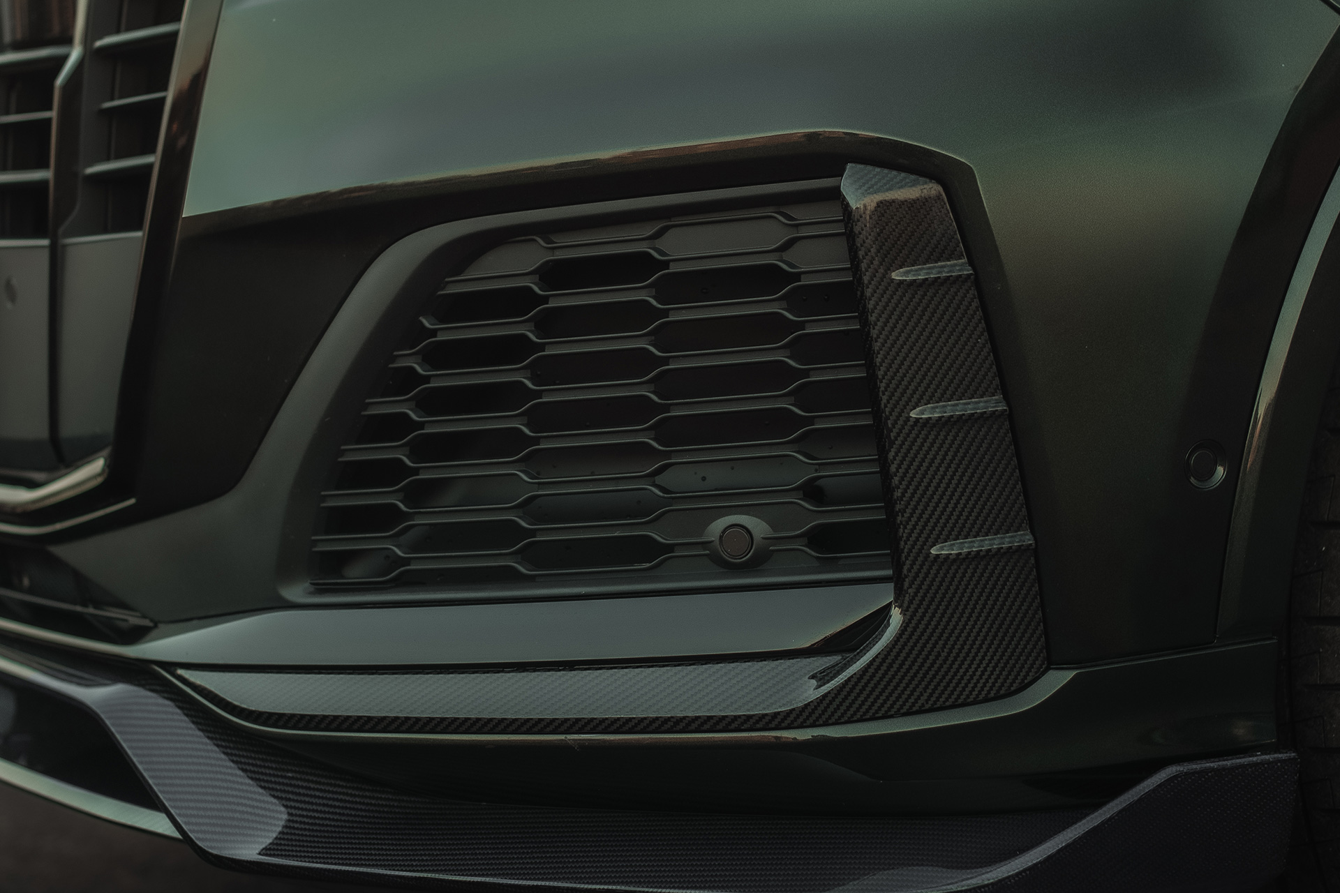 Накладки формируют более агрессивный и собранный образ, подчеркивая спортивный характер версий S-Line и SQ7. Геометрия элементов точно повторяет форму штатных воздуховодов, обеспечивая плотную посадку и гармоничную интеграцию без зазоров.