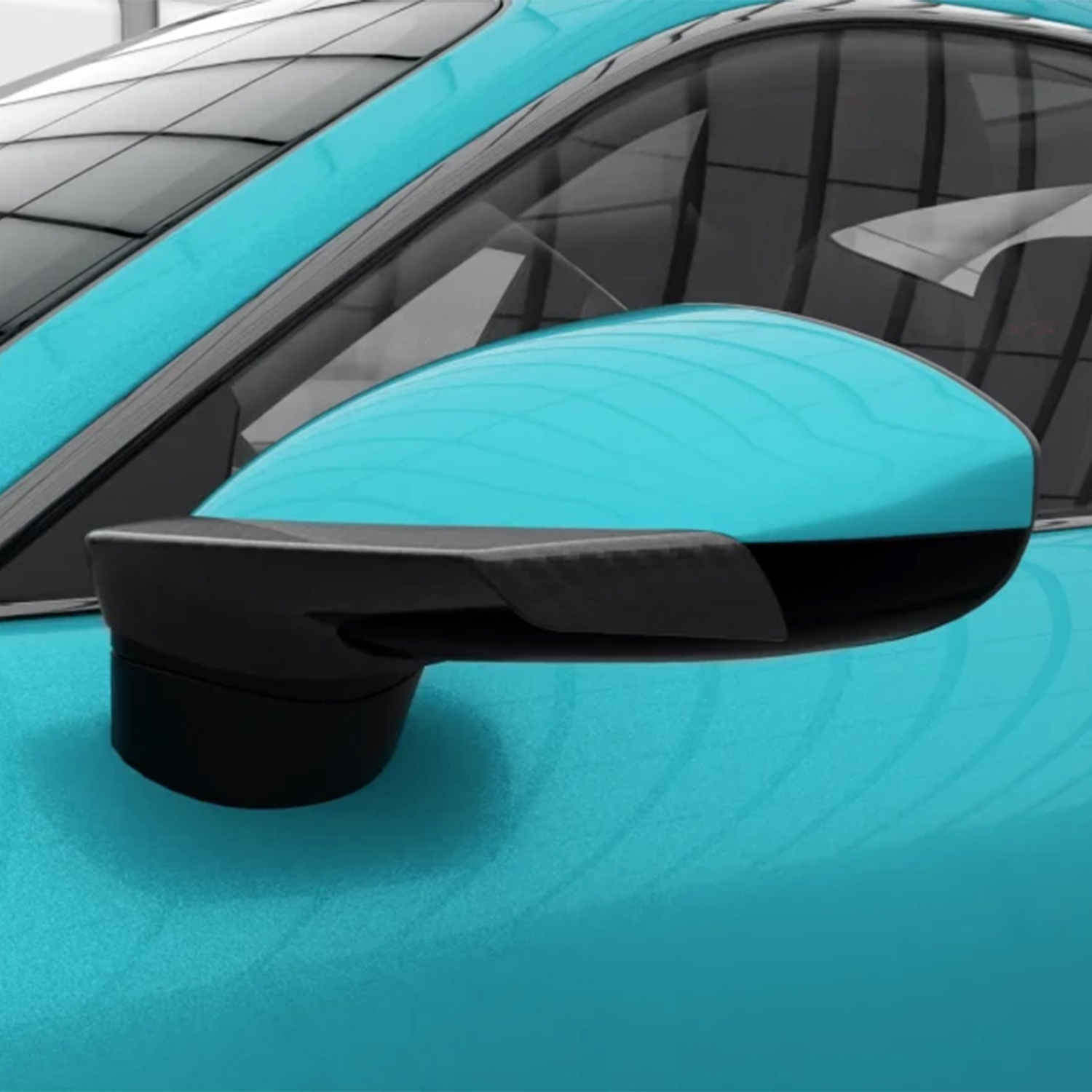 Накладки повторяют форму штатных зеркал Porsche 911 и органично интегрируются в дизайн кузова. Благодаря компактному, но выразительному дизайну элементы создают дополнительные спортивные акценты и делают внешний вид автомобиля более динамичным.