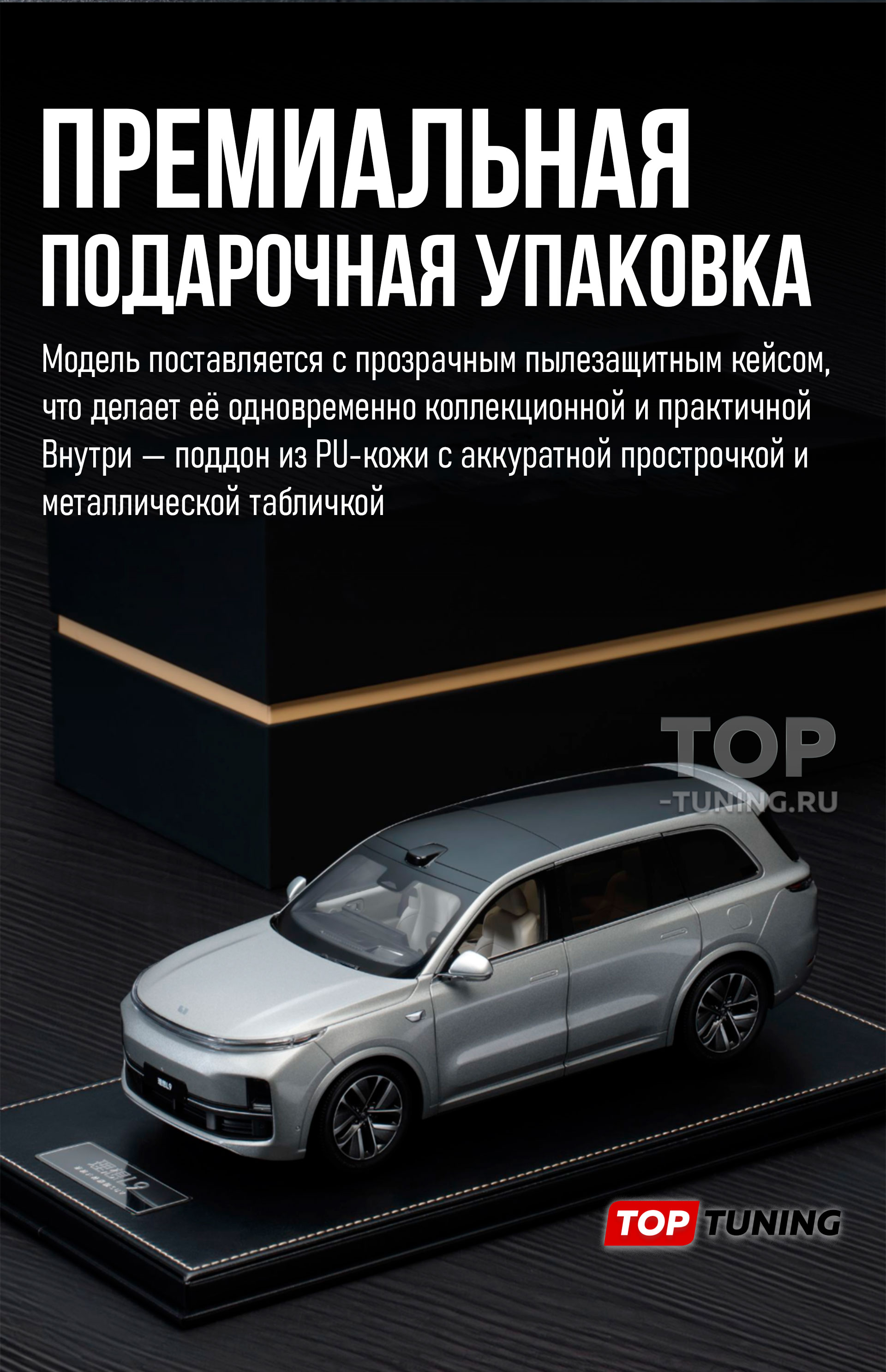 Модель поставляется в элегантной подарочной упаковке с пылезащитным боксом, металлической табличкой и поддоном из PU-кожи, что придаёт ей коллекционную ценность и делает отличным подарком для владельцев Lixiang.