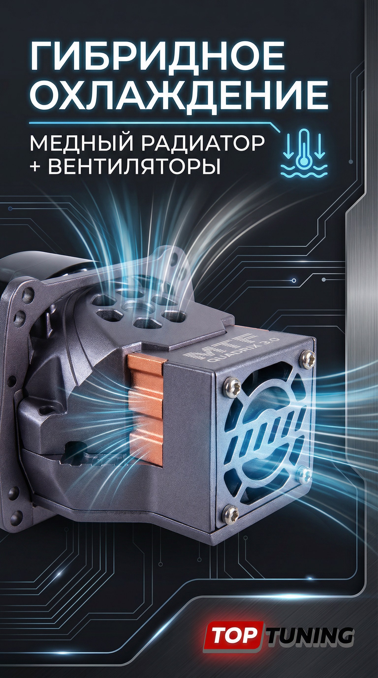 Система эффективно отводит тепло от светодиодов, предотвращая перегрев даже при высокой температуре окружающей среды и продолжительной работе дальнего света.