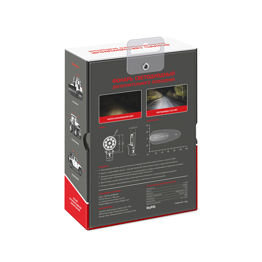 Крепление на регулируемом кронштейне позволяет точно настраивать направление света в двух плоскостях. Рабочий диапазон температур от -40°C до +85°C делает этот фонарь надёжным помощником в любых климатических условиях.