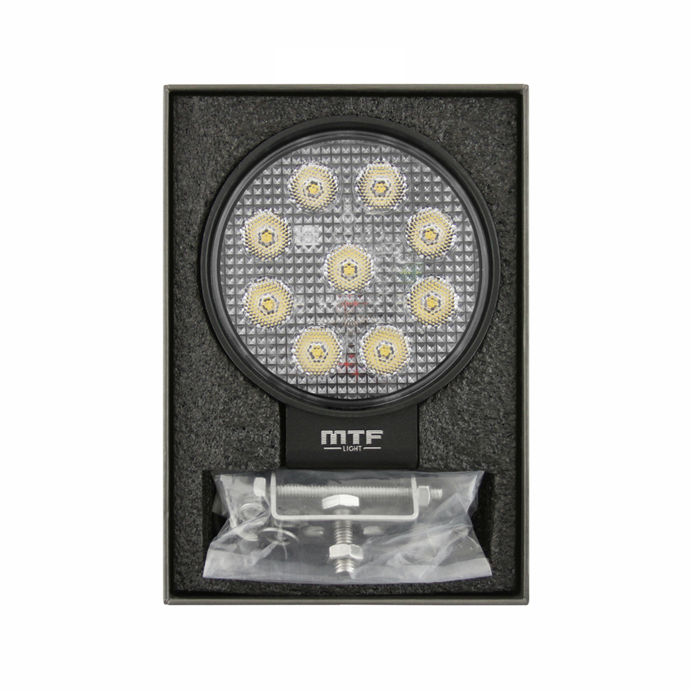 Светодиодный круглый фонарь дополнительного освещения MTF LIGHT 27Вт — мощный и универсальный источник света для внедорожной, сельскохозяйственной, строительной и спецтехники с напряжением бортовой сети 12–60 В. Оптимальный выбор для тех, кто ценит надежность, эффективность и современный внешний вид.