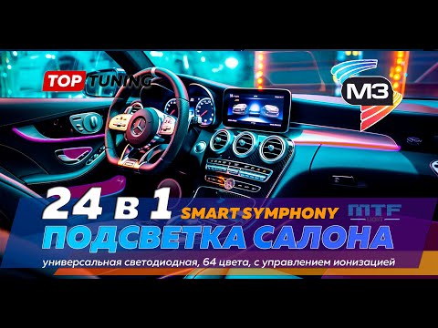 Система Smart Symphony M3 поставляется в двух комплектациях на выбор, 24 в 1 или 18 в 1. Наборы абсолютно идентичны по своим параметрам. Версия 18 в 1 поставляется без четырех плафонов подсветки дверей и двух светодиодных лент для подсветки центрального тоннеля.Каждую из систем можно дооснащать комплектом фирменных полос MTF.