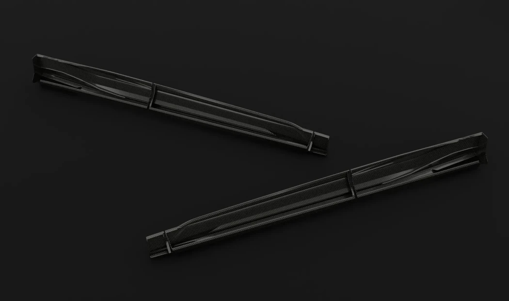 Детали доступны в двух вариантах: натуральный карбон с открытой текстурой или базальтовый композит с окраской. Оба материала обеспечивают долговечность и точное соответствие линиям кузова, добавляя премиальный акцент на боковую проекцию автомобиля.