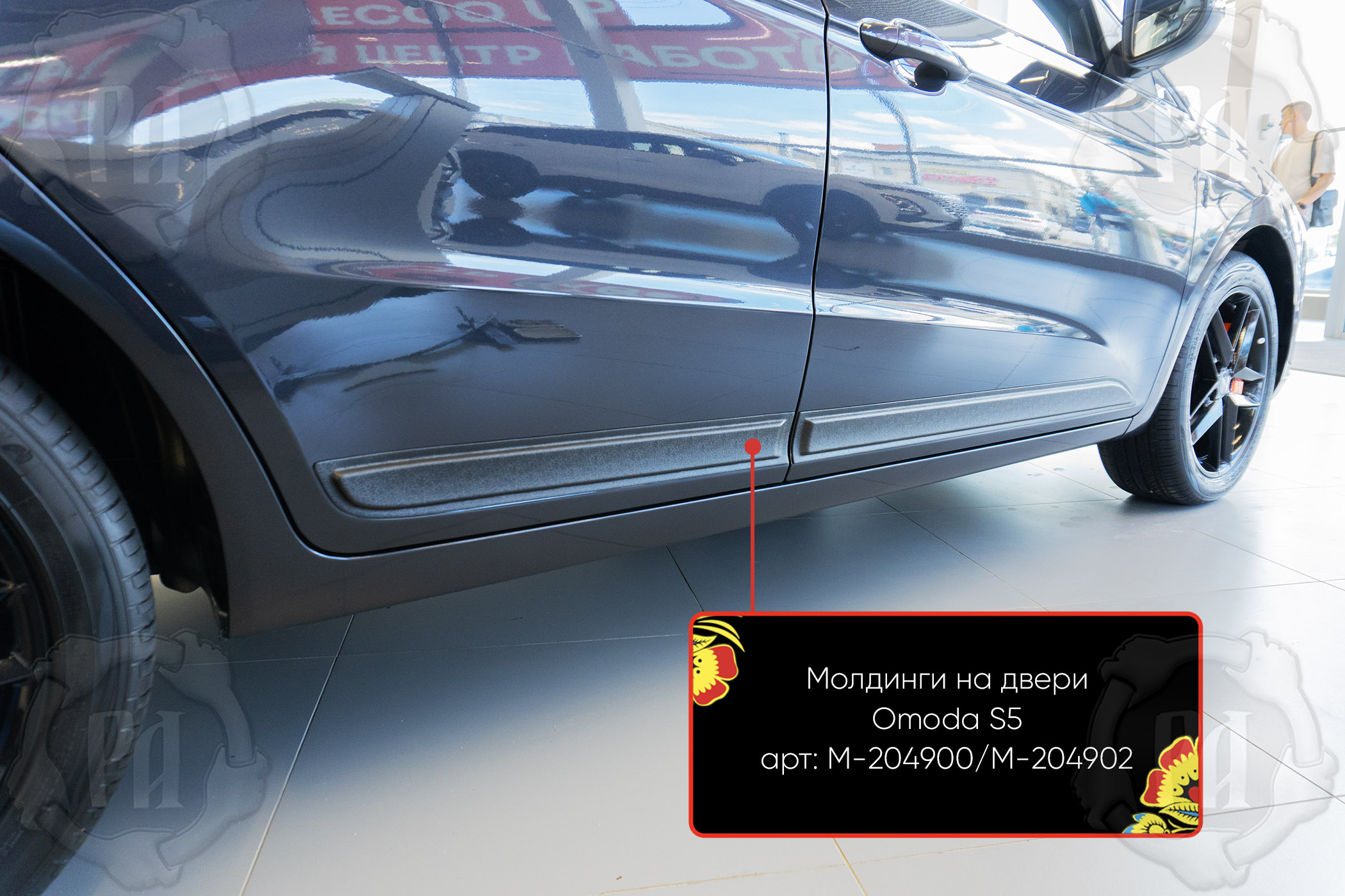 Молдинги на двери для OMODA S5 2022 – это защитные накладки, разработанные для предотвращения механических повреждений кузова и сохранения лакокрасочного покрытия автомобиля.