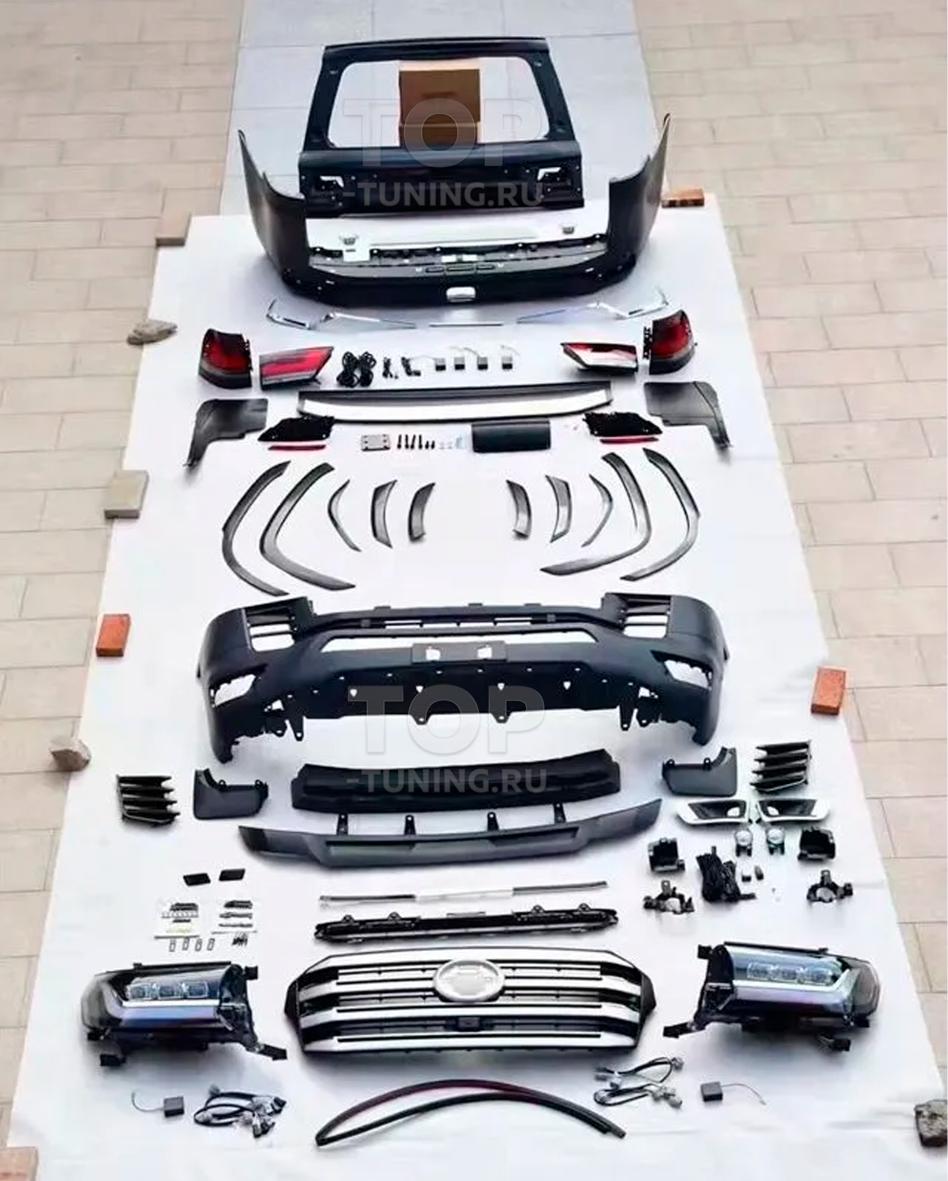 Набор Land Cruiser 300 Style для рестайлинга Toyota Land Cruiser 200. Набор включает в себя все необходимые навесные элементы кузова, оптику и задние фонари для полноценной конверсии автомобиля под ключ. Фары и фонари не меняются в размерах, поставляются стилизованными под LC300. После установки обвеса автомобиль получит совершенно новый дизайн, приближенный к дизайну современного Land Cruiser 300. Благодаря сохраненному форм фактору оптики обвес устанавливается без серьезных вмешательств в конструкцию автомобиля.