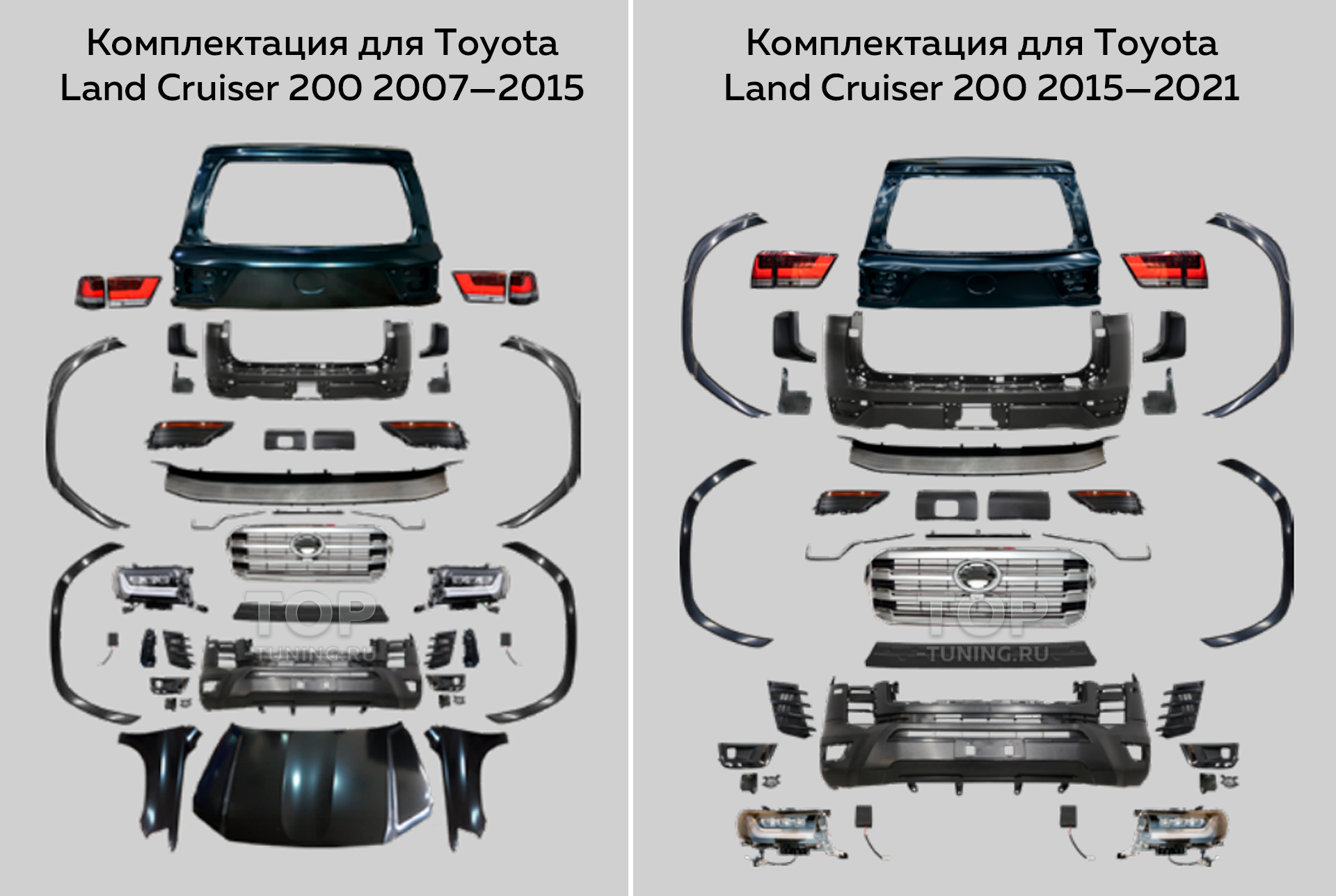 - Для Land Cruiser 200 (2007-2015): полный комплект + передние крылья + капот