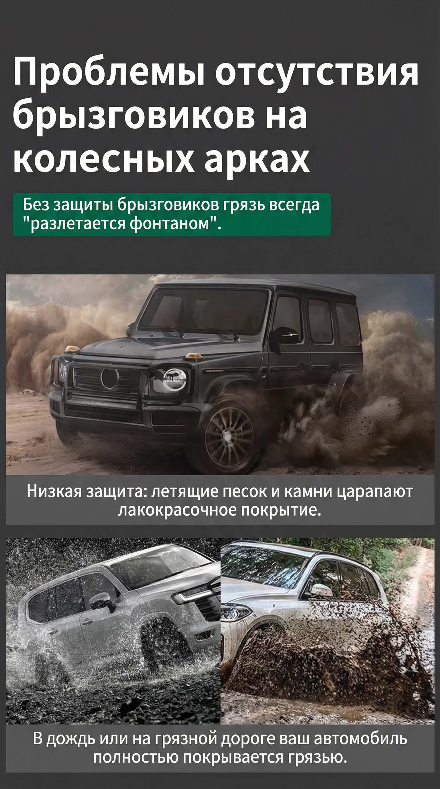 Накладки работают как направляющие дефлекторы — они корректируют поток грязи и воды, уменьшая ее попадание на кузов.