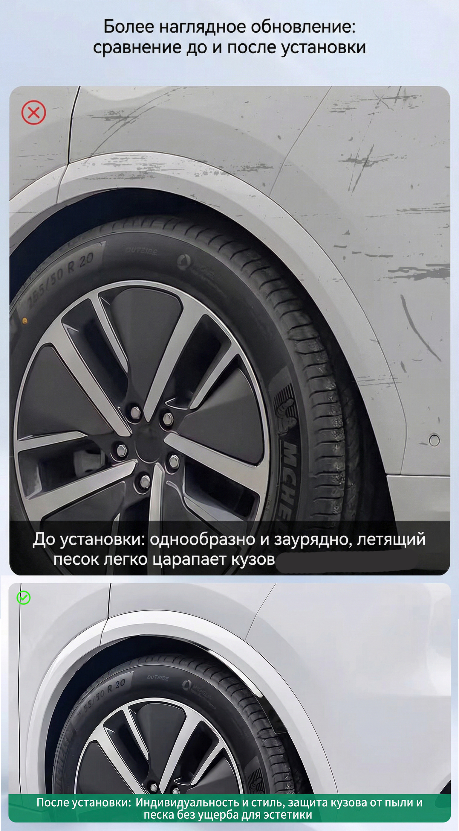 Накладки на колесные арки — это практичное решение для защиты бортов кузова и задней части автомобиля от загрязнений, пескоструя и мелких камней, вылетающих из-под колес.