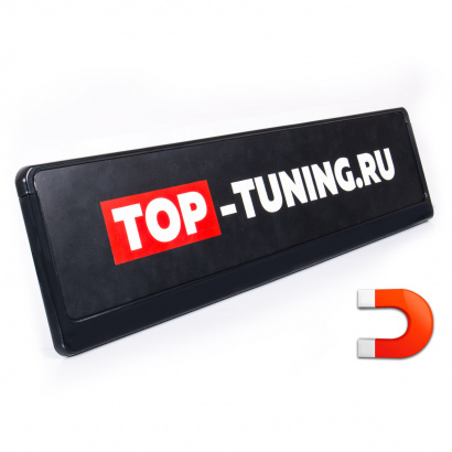 Основа рамки - широкая, металлическая пластина, крепится к заднему бамперу автомобиля на специальные болтовые соединения (в комплекте). Верхняя рамка с номерным знаком изготовлена из прочного ABS пластика, с внутренней стороны имеет пять мощных неодимовых магнитов. Магнитная рамка с номерным знаком надежно фиксируется на металлической пластине и при необходимости легко демонтируется.