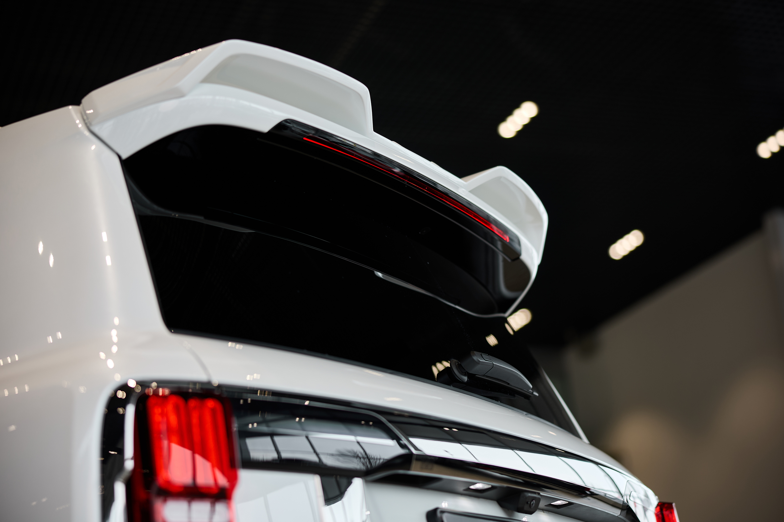 - Кастомная раздвоенная выхлопная система: Черные матовые насадки и дополнительные стоп-сигналы усиливают эксклюзивность автомобиля. Установка выхлопной системы производится с соблюдением всех стандартов и без нарушения гарантийных обязательств.