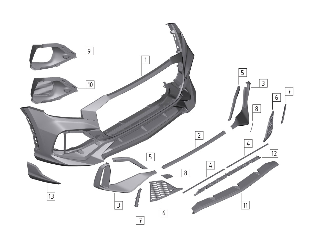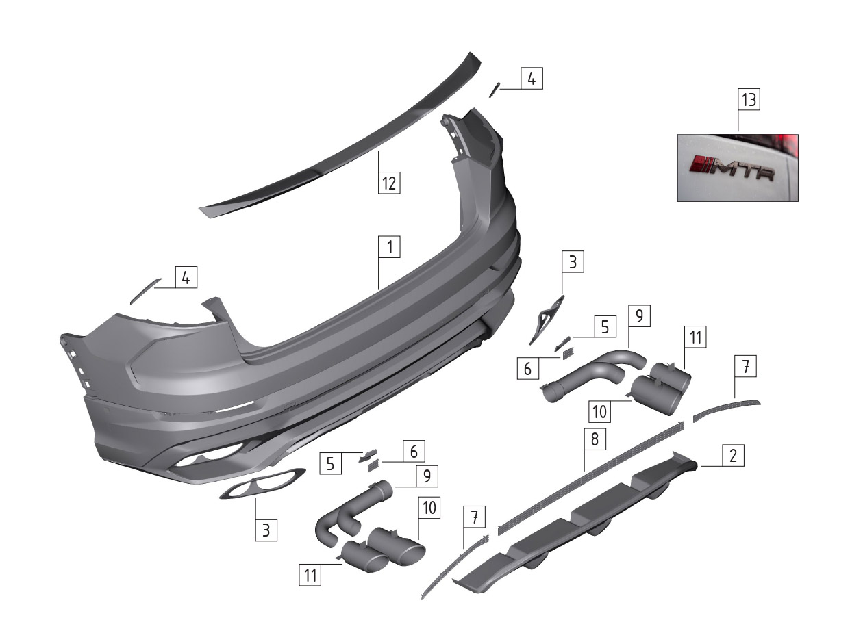 | 13 | Накладки боковые нижние L / R | 1 / 1 | Для а/м без S-Line |