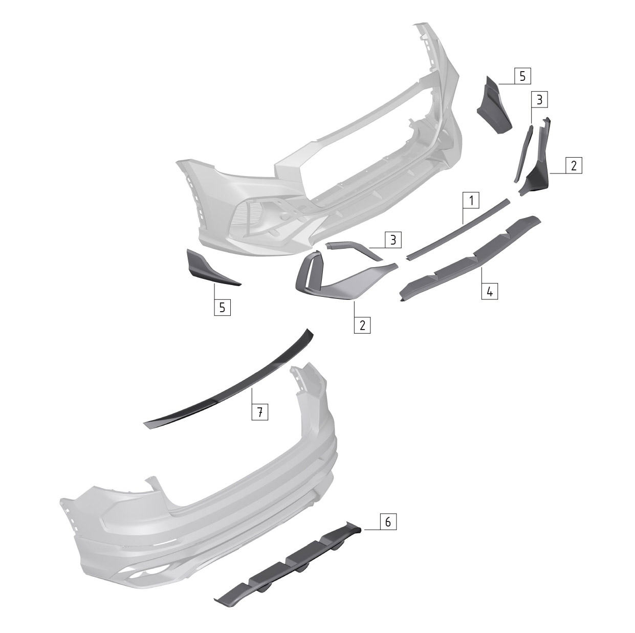 | 5 | Накладки нижние боковые переднего бампера, карбон (L / R) | 1 / 1 | Для Base |