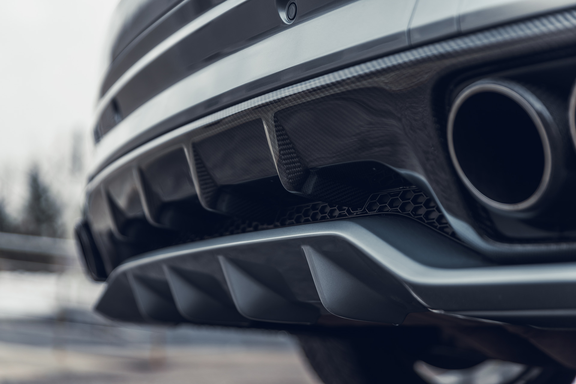 Задняя часть выполнена в единой стилистике: переработанный диффузор, новые накладки и фирменные насадки выхлопа формируют цельный, агрессивный и премиальный образ.