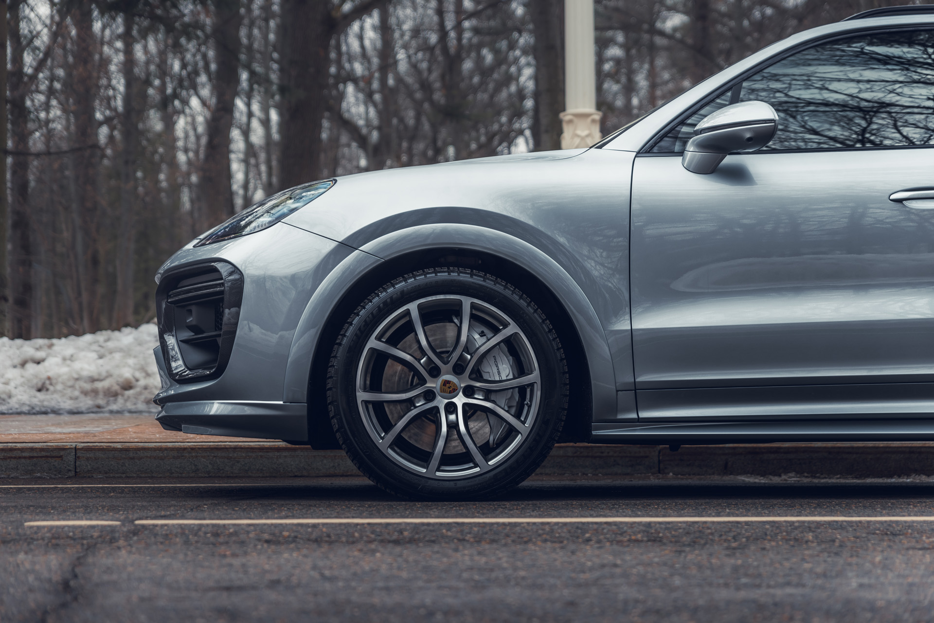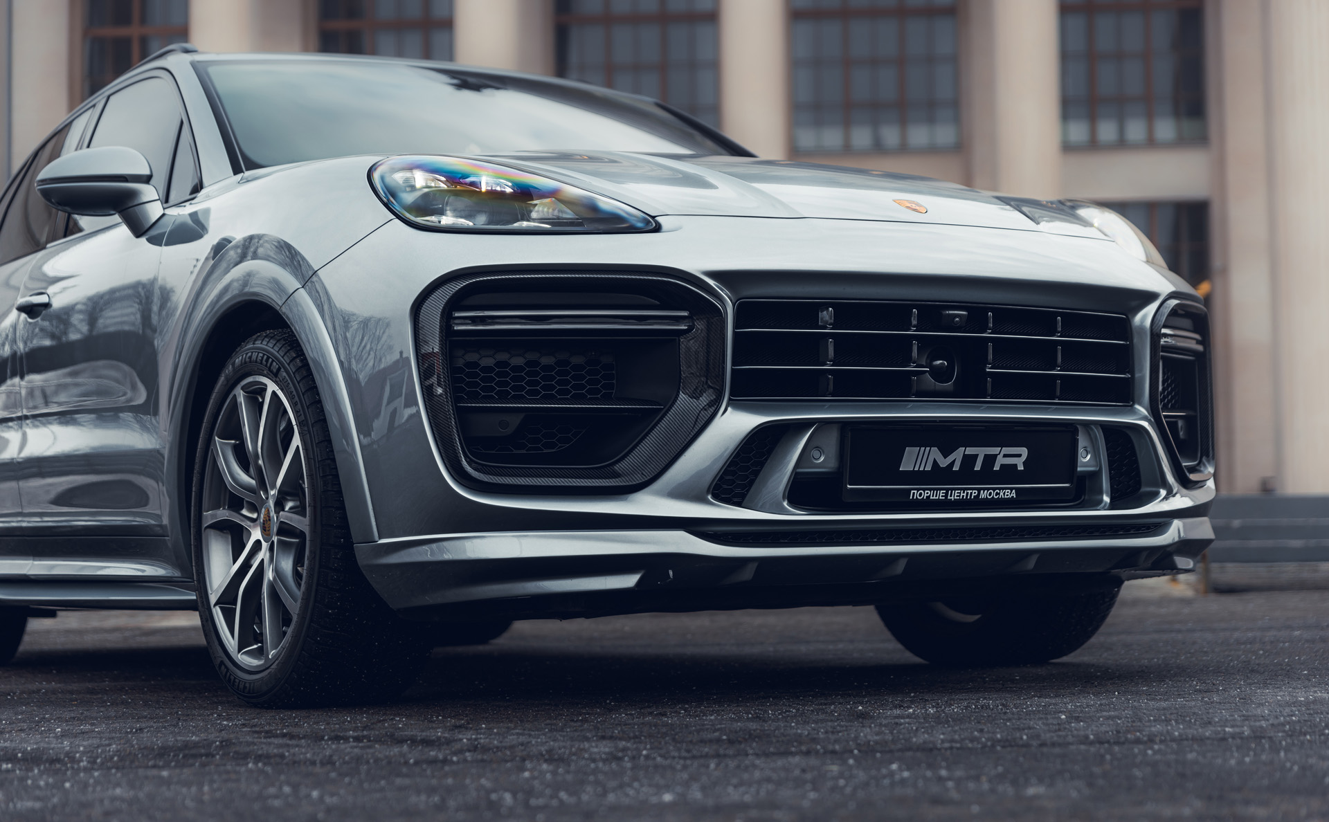 Cayenne Turbo с базовым комплектом и порогами, дополненный карбоновыми аксессуарами MTR Design