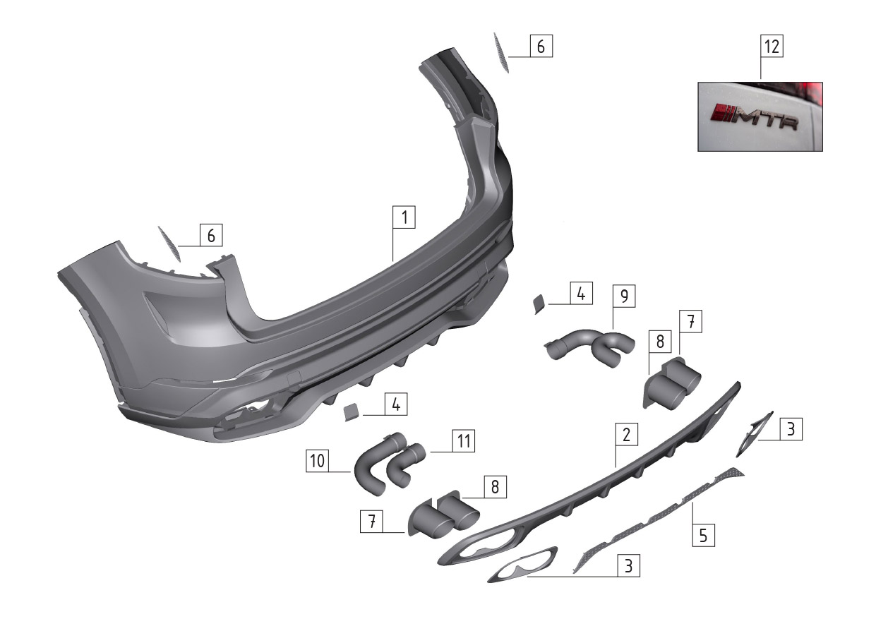 Состав комплекта заднего бампера и диффузора