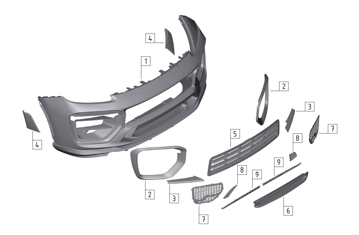 Состав комплекта переднего бампера (Base / S)