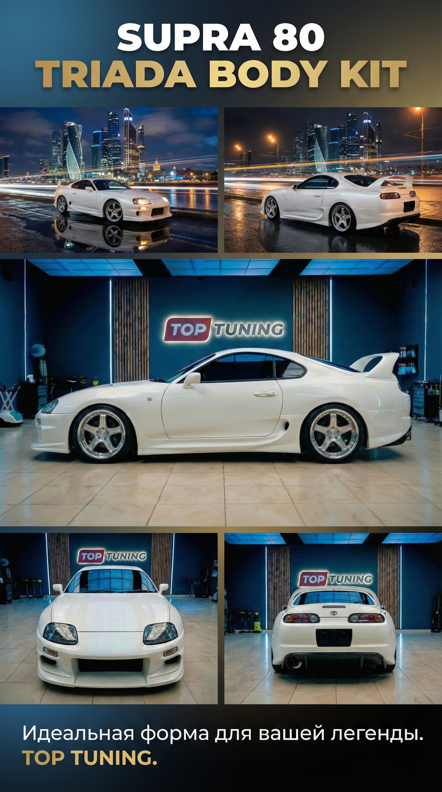 Комплект обвеса Triada для Toyota Supra 80 создан для владельцев легендарной Supra поколения A80, которые хотят изменить внешний вид автомобиля и сделать его более выразительным. Набор включает передний бампер, задний бампер и боковые накладки на пороги с воздухозаборниками.