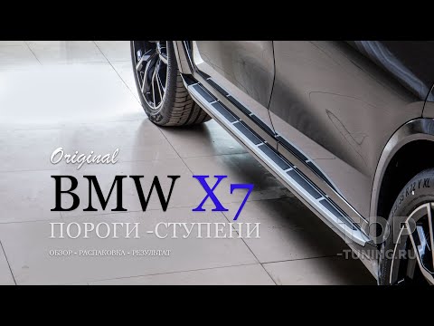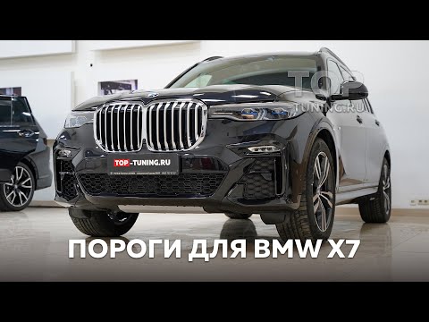 Полный установочный комплект порогами (ступеньками) для BMW X7 G07 позволяет улучшить посадку и выход из автомобиля, а так же облегчить погрузку багажа на крышу. Верхняя вставка выполнена из алюминия и оснащена противоскользящим резиновым вкладышем, для снижения риска проскальзывания в плохую погоду.