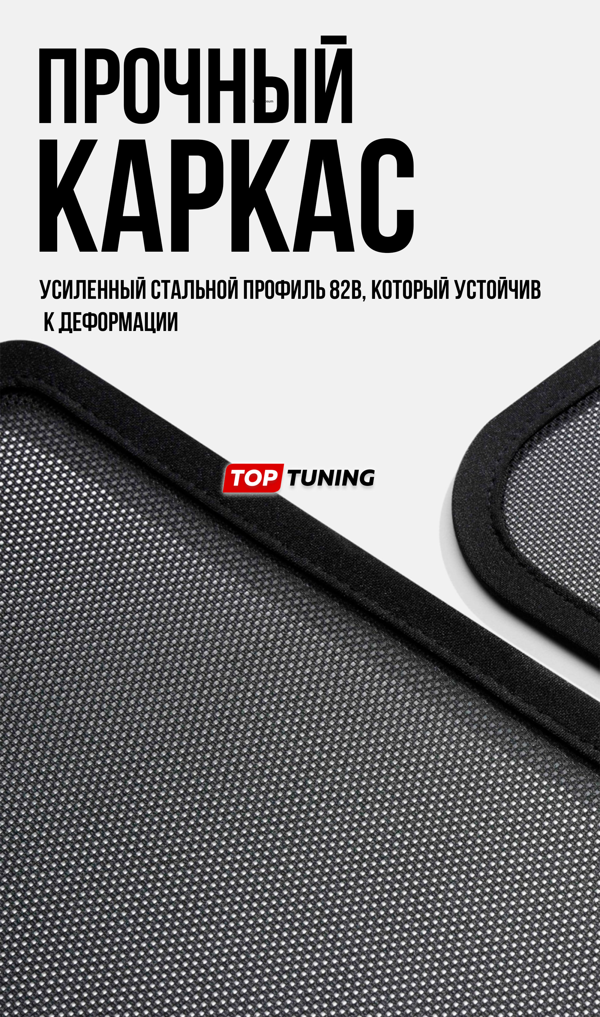 Чтобы шторки годами сохраняли свою идеальную форму, их каркас изготовлен из стали марки 82B. Этот материал известен своей исключительной упругостью и устойчивостью к деформации. Даже после многократного использования и циклов установки/снятия шторки не прогнутся и не потеряют форму. Эстетичности добавляет внешнее покрытие каркаса — эластичная ткань, которая делает конструкцию визуально легкой и приятной на ощупь.