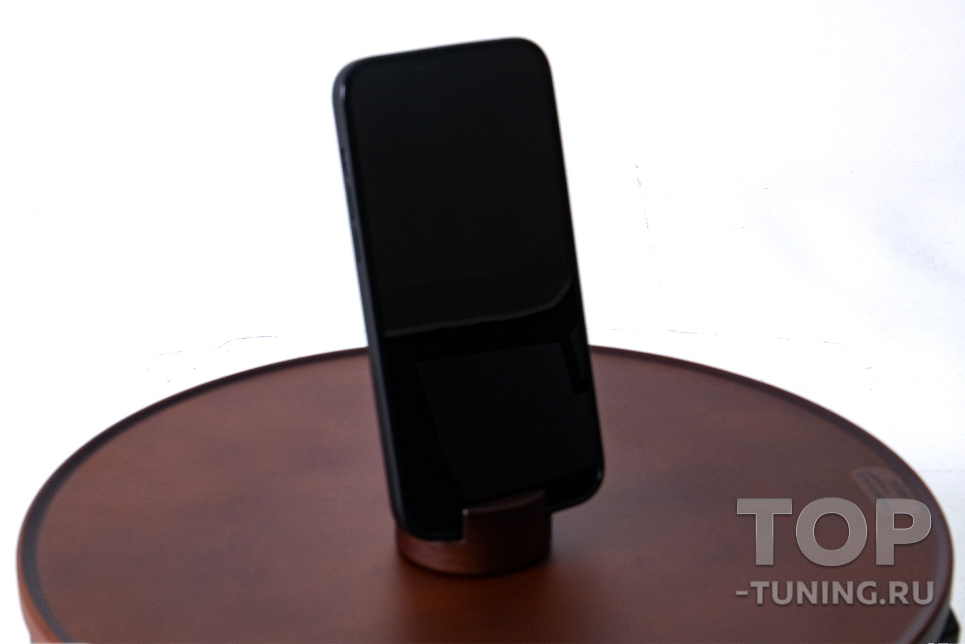 В набор входит дизайнерский держатель для смартфона из массива дерева.