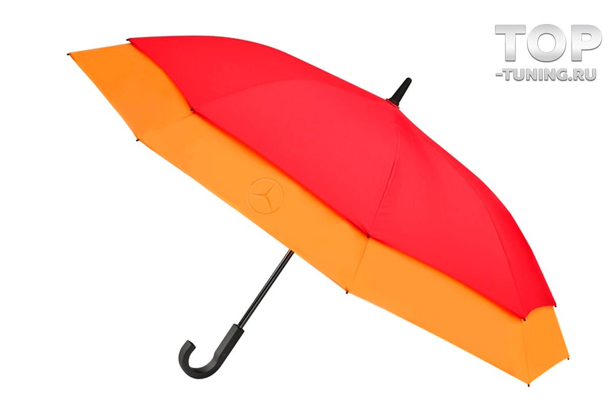 Поднять настроение в хмурый дождливый день поможет яркий и стильный зонт-трость от компании Mercedes. Изготовленный из композитного стеклопластика он способен выдержать даже сильные порывы ветра. Благодаря большому размеру купола, под зонт легко помещаются 2 человека. Украшением к зонту является логотип звезды Mercedes, расположенной на куполе и стальной ручке.