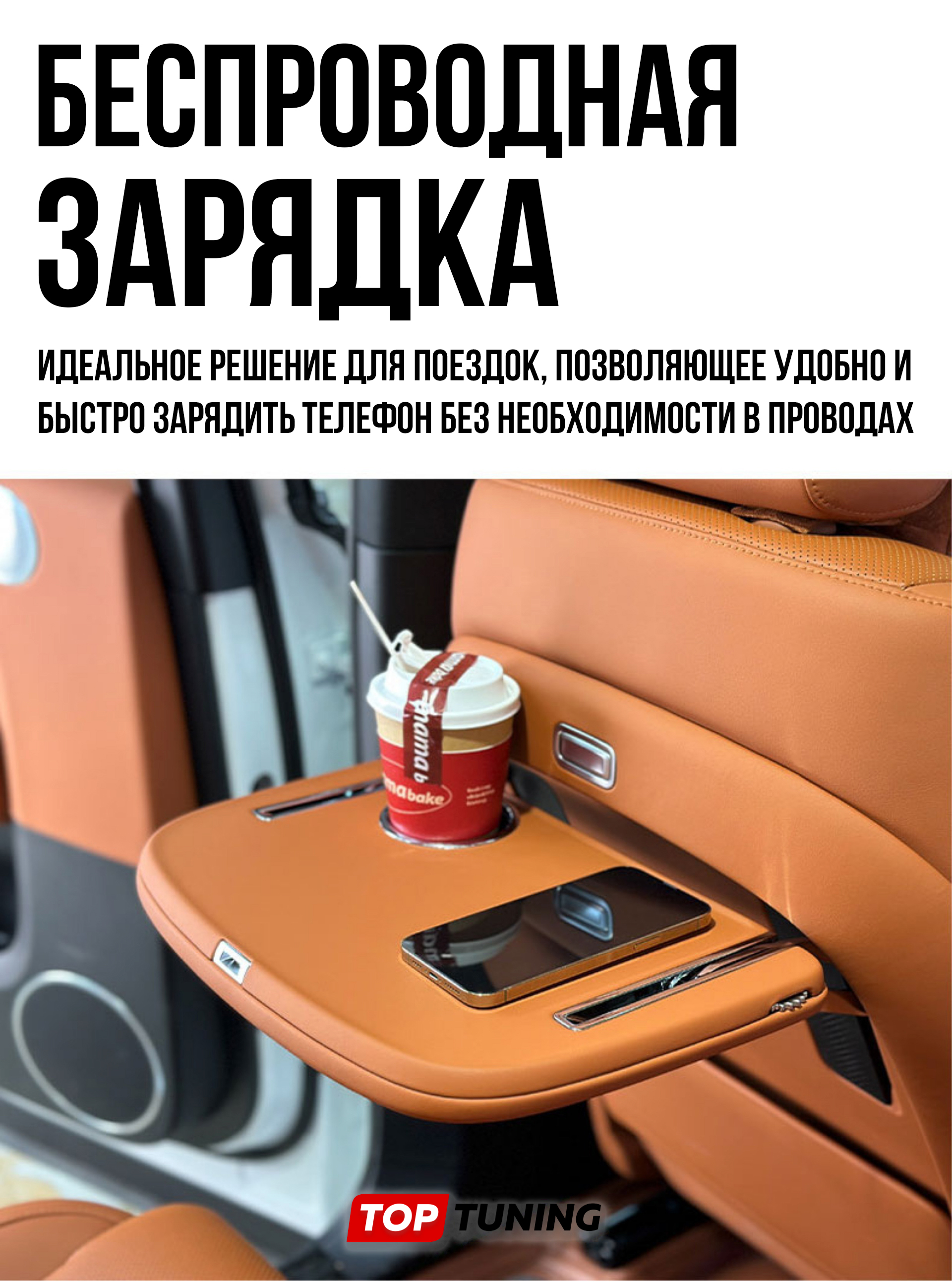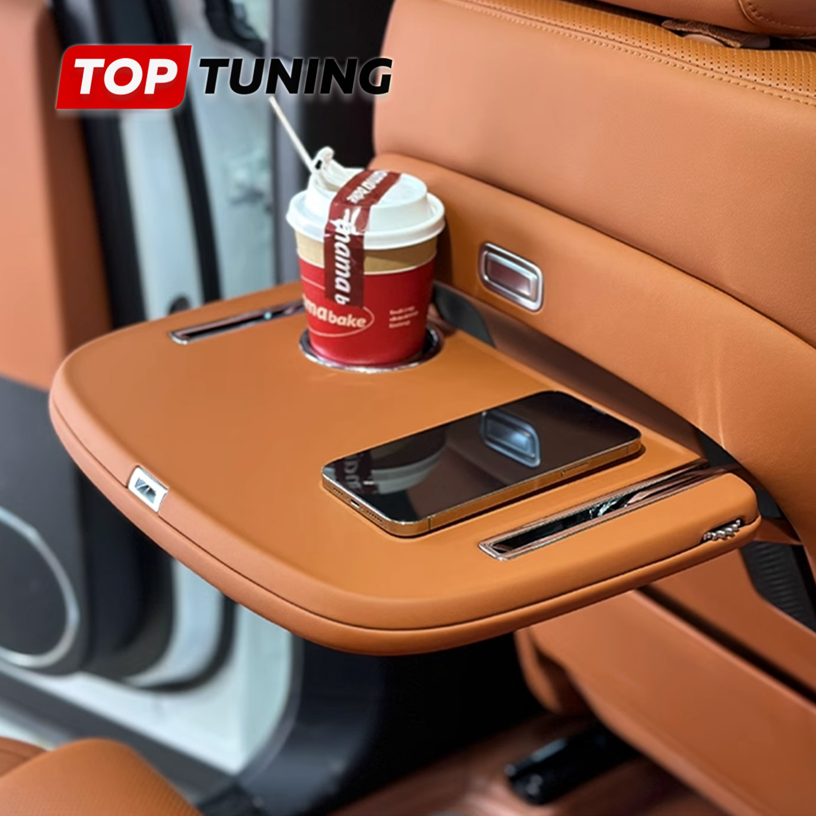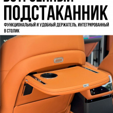 Оснащён встроенной беспроводной зарядкой для смартфона, регулировкой угла наклона столешницы и подстаканником. В сложенном состоянии столик минимально влияет на пространство салона и не мешает посадке и высадке пассажиров.