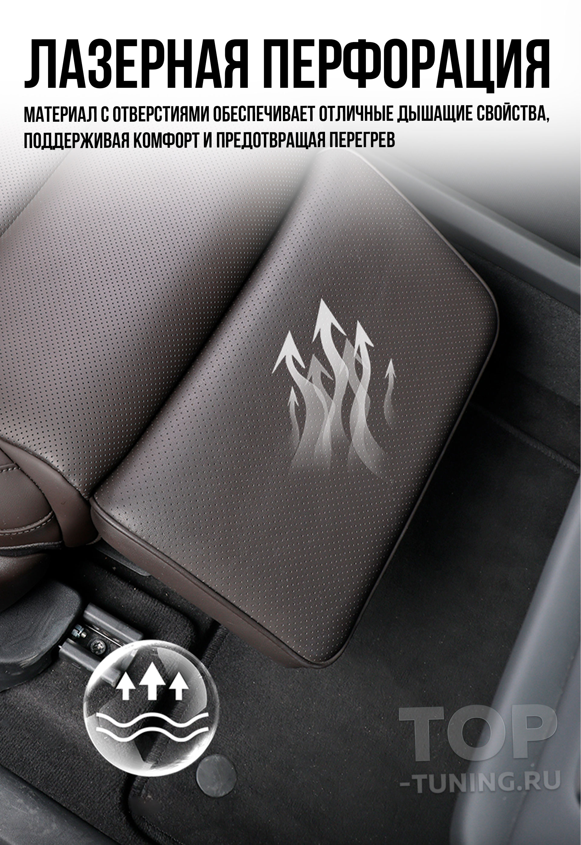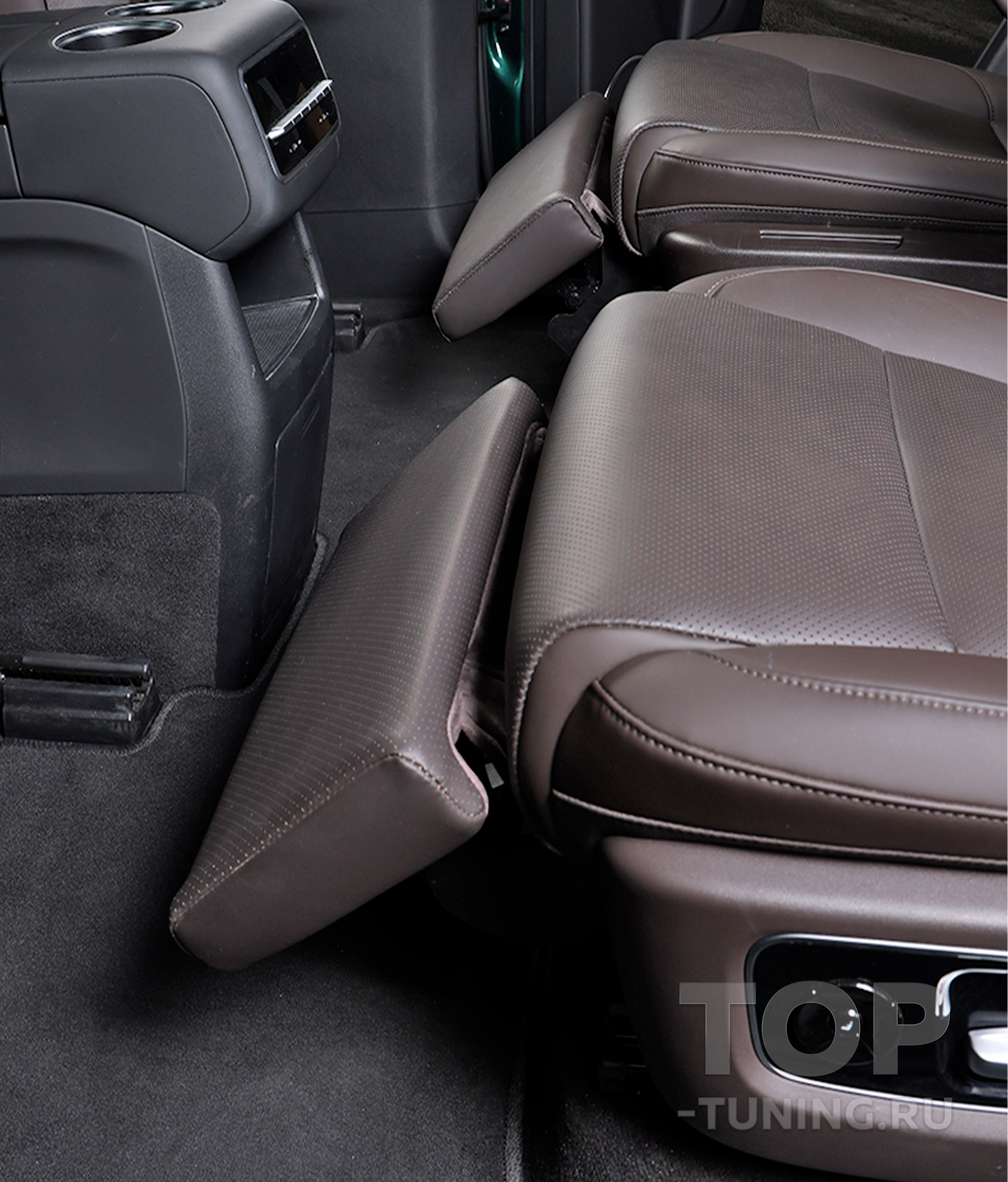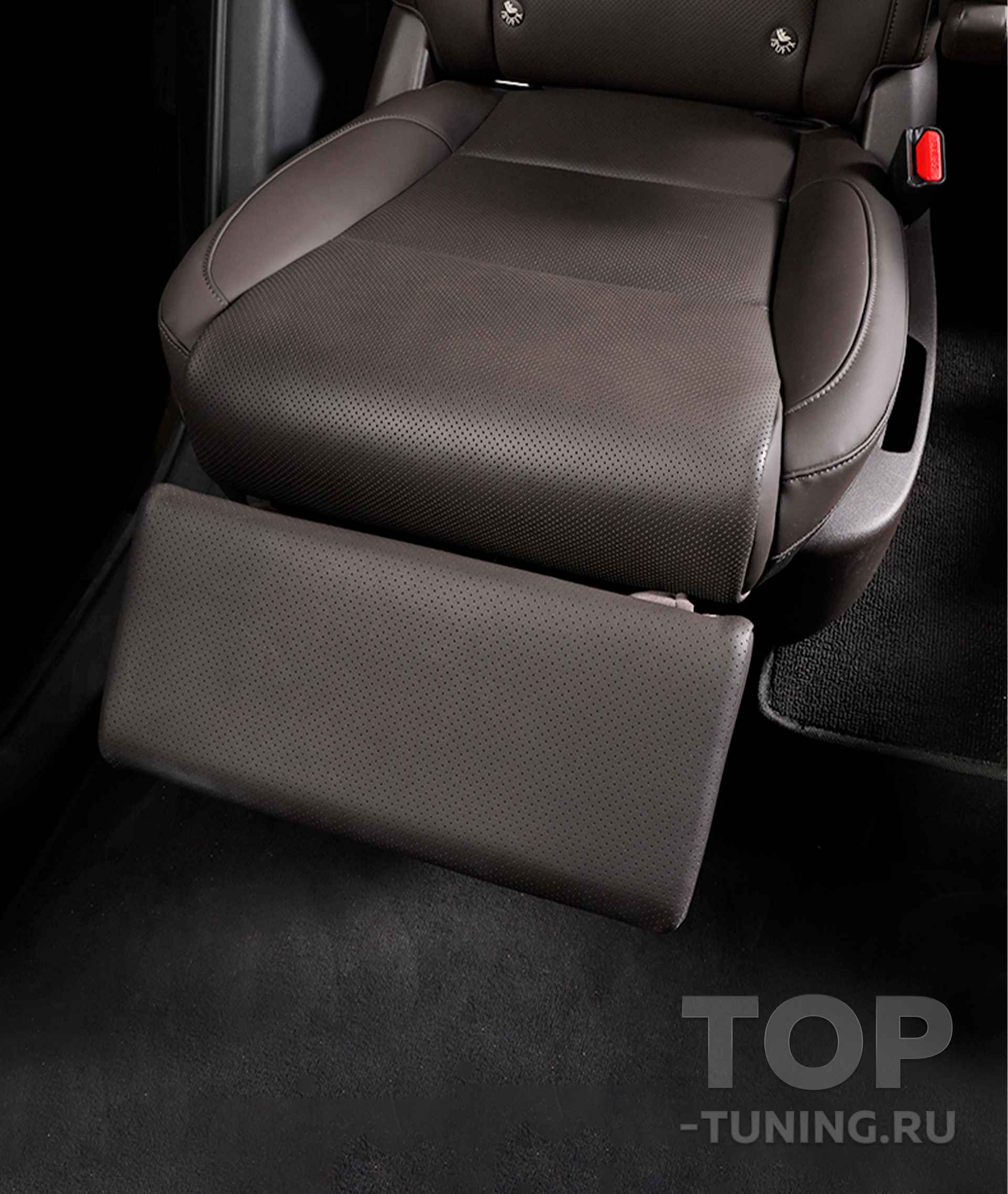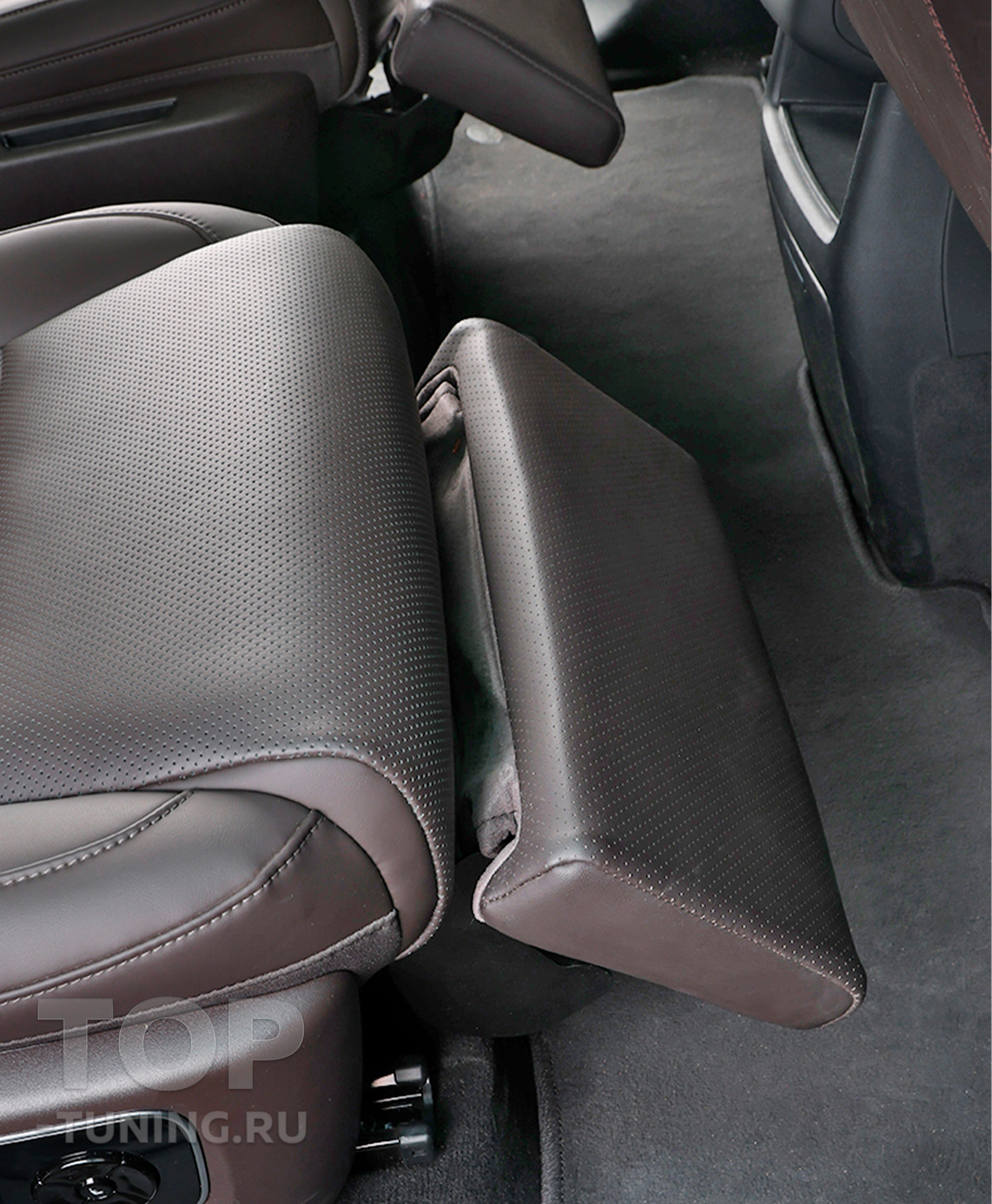 Электропривод обеспечивает плавную регулировку угла наклона, а индивидуальная кнопка управления делает использование простым и интуитивным. Каркас конструкции изготовлен из прочной стали, а обивка выполнена из качественной перфорированной экокожи в цвет интерьера автомобиля, что подчёркивает её заводской вид. Это не просто аксессуар — это элемент комфорта бизнес-класса, интегрированный в повседневную поездку..