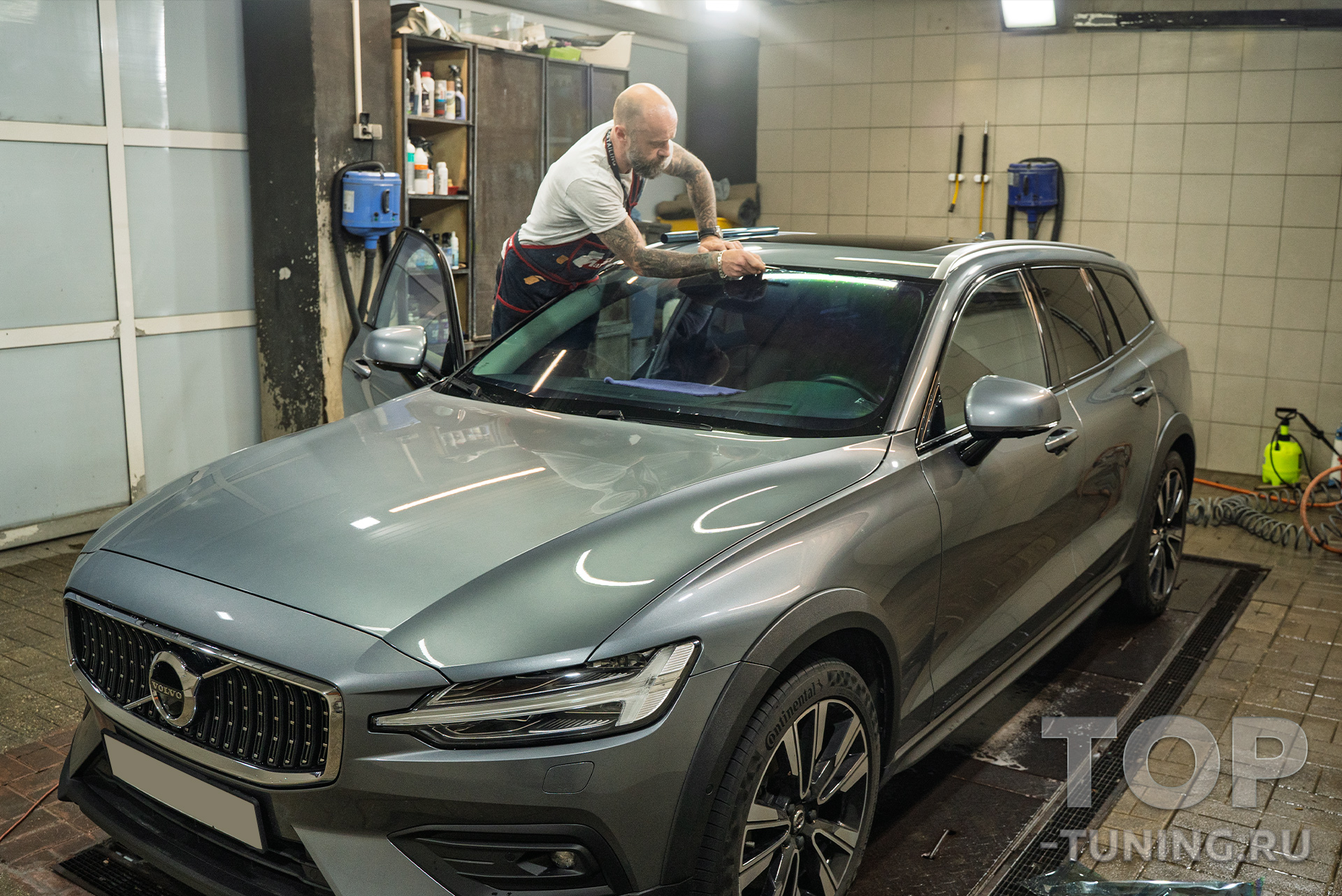 Оклейка лобового стекла Volvo V60 тонировочной пленкой STEK против инфракрасных лучей и ультрафиолета
