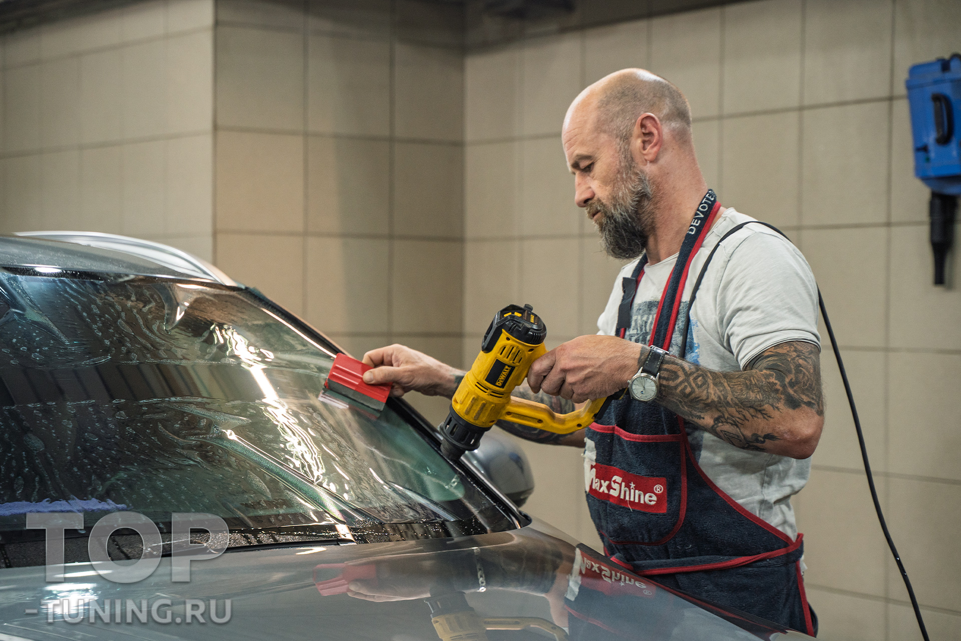 Перед оклейкой специалисты Топ Тюнинг Москва провели чистку и обработку поверхности лобового стекла Volvo V60. В состав тонировочной пленки STEK NEX входят графен и керамика, которые обеспечивают целый комплекс защитных свойств: